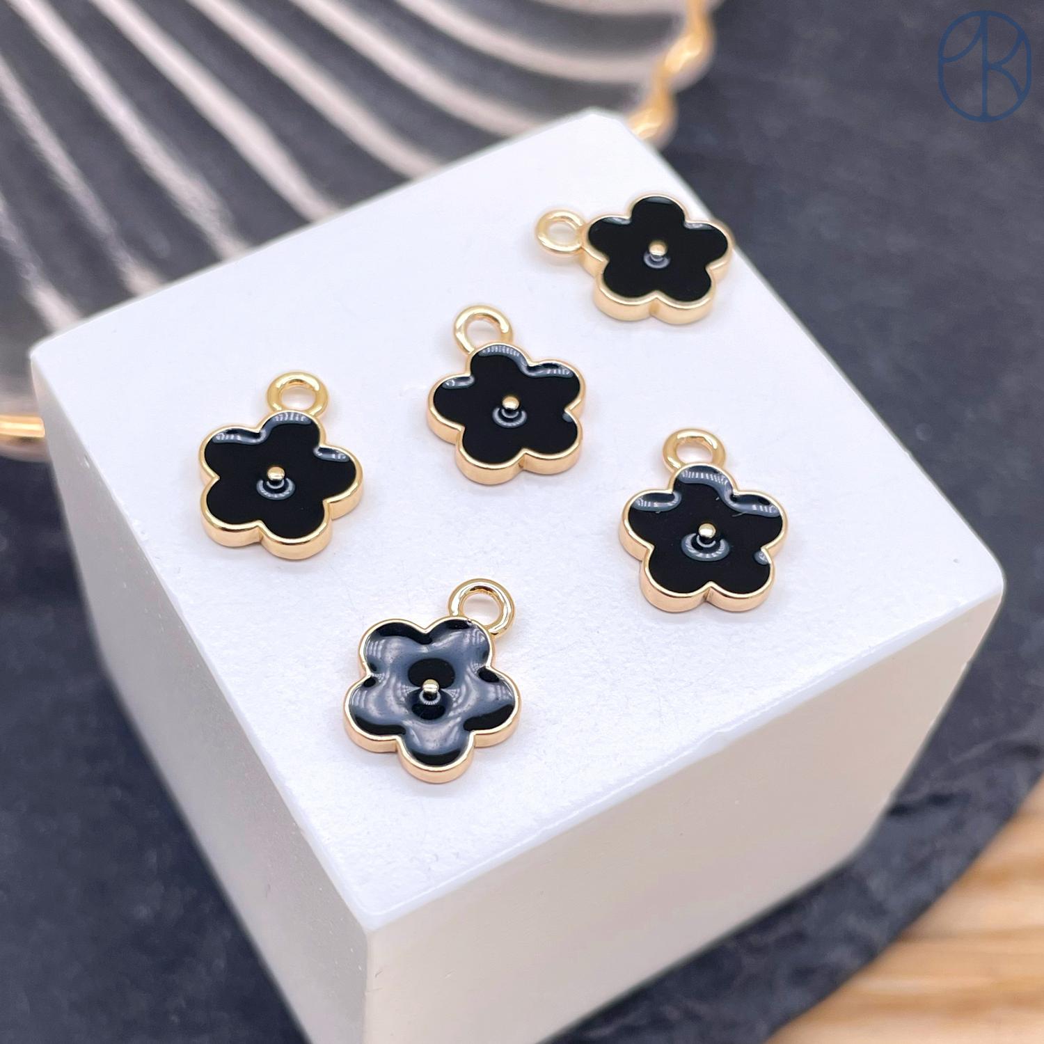 Подвеска цветок черная эмаль, цвет золото 8 мм