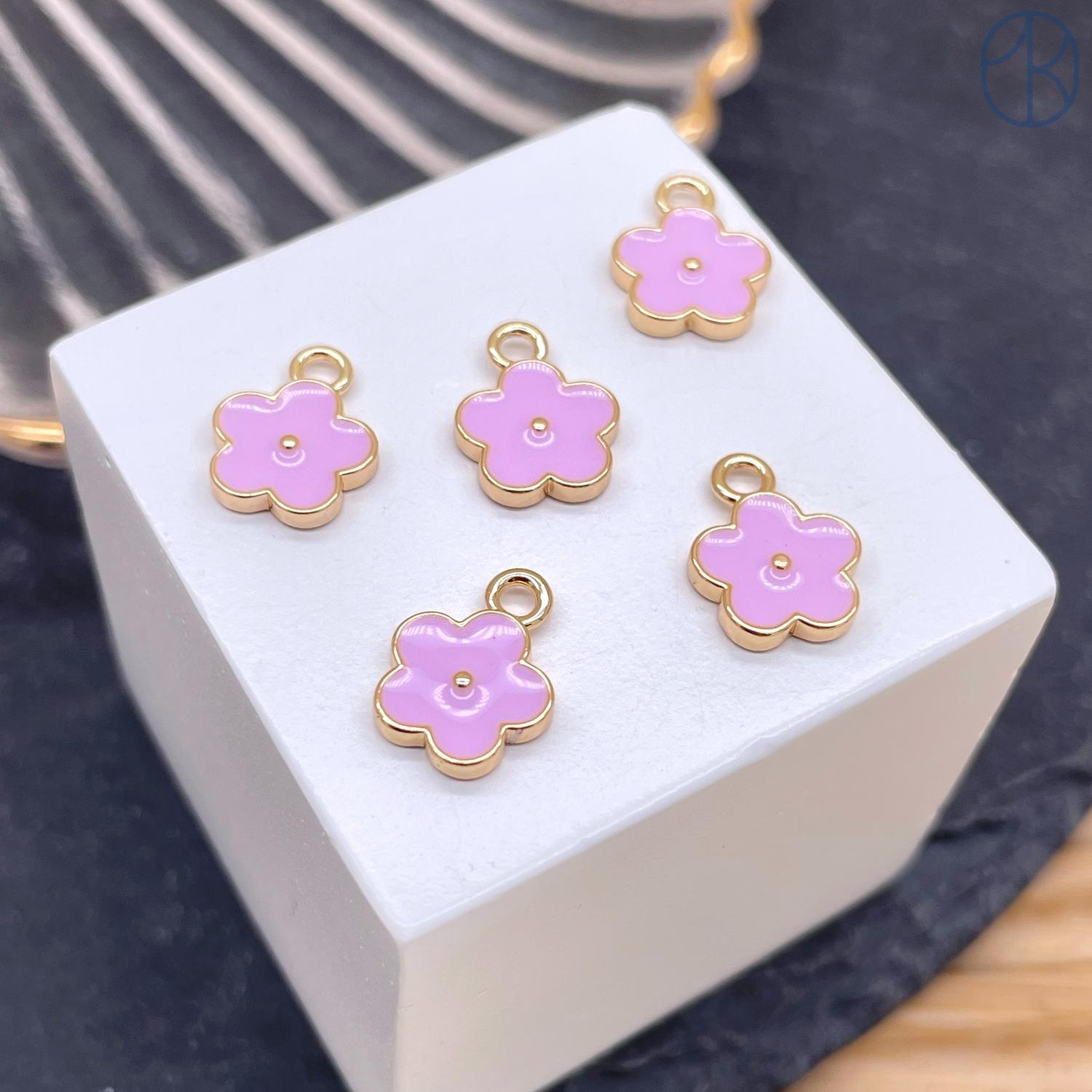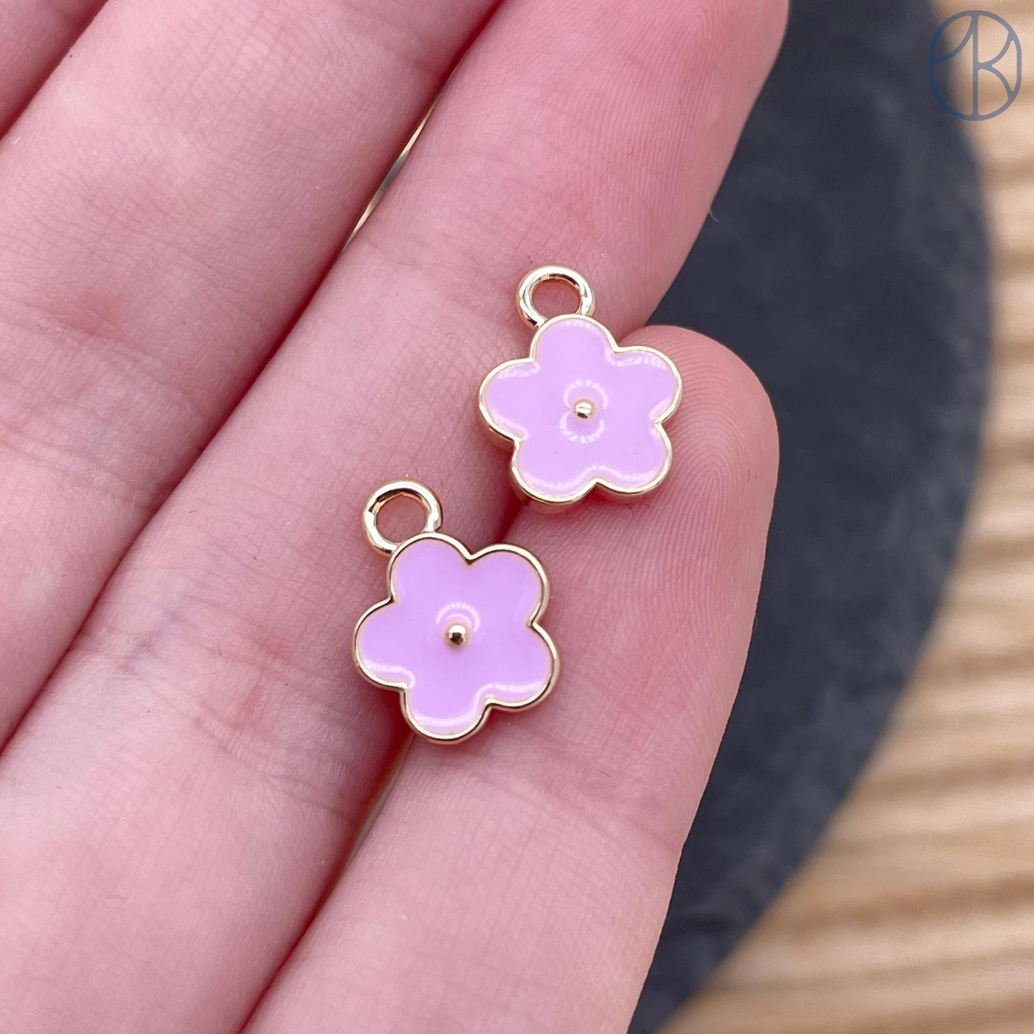 Подвеска цветок розовая эмаль, цвет золото 8 мм
