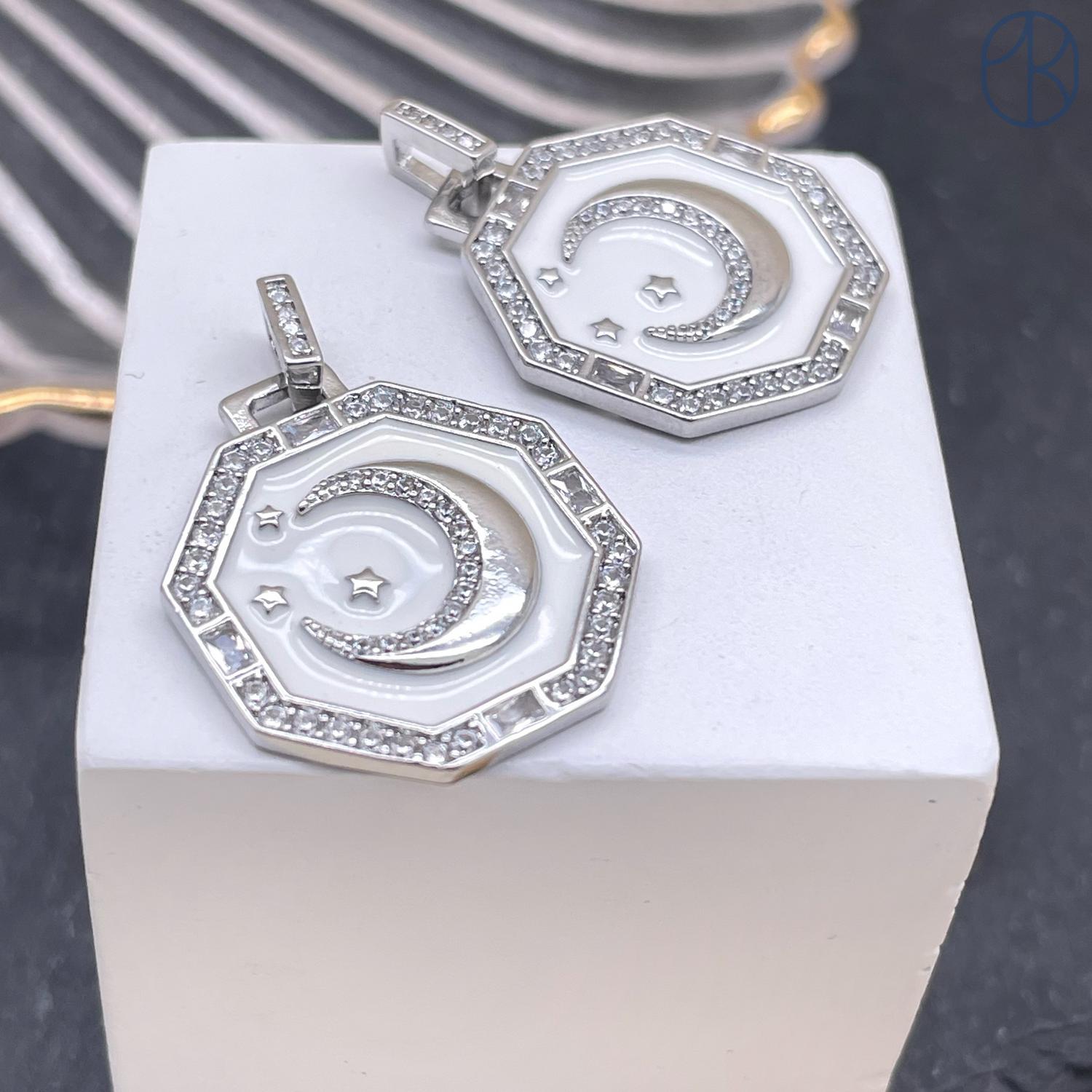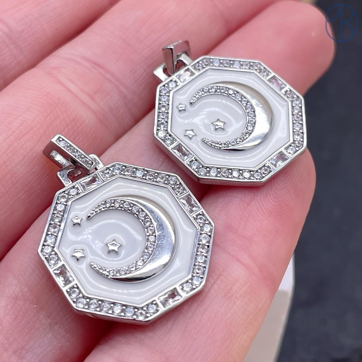 Подвеска полумесяц белая эмаль, цвет серебро 23х20 мм