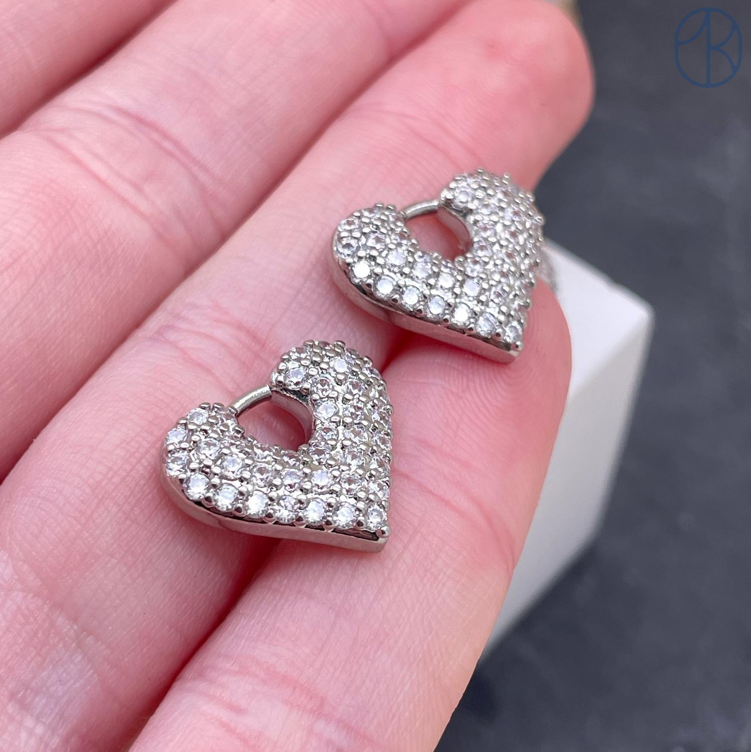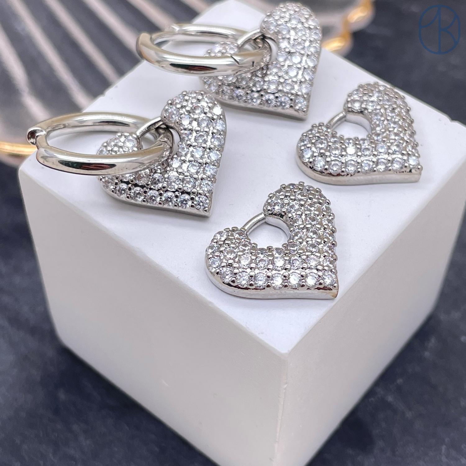 Подвеска бублик сердце цирконы, цвет серебро 16х14 мм