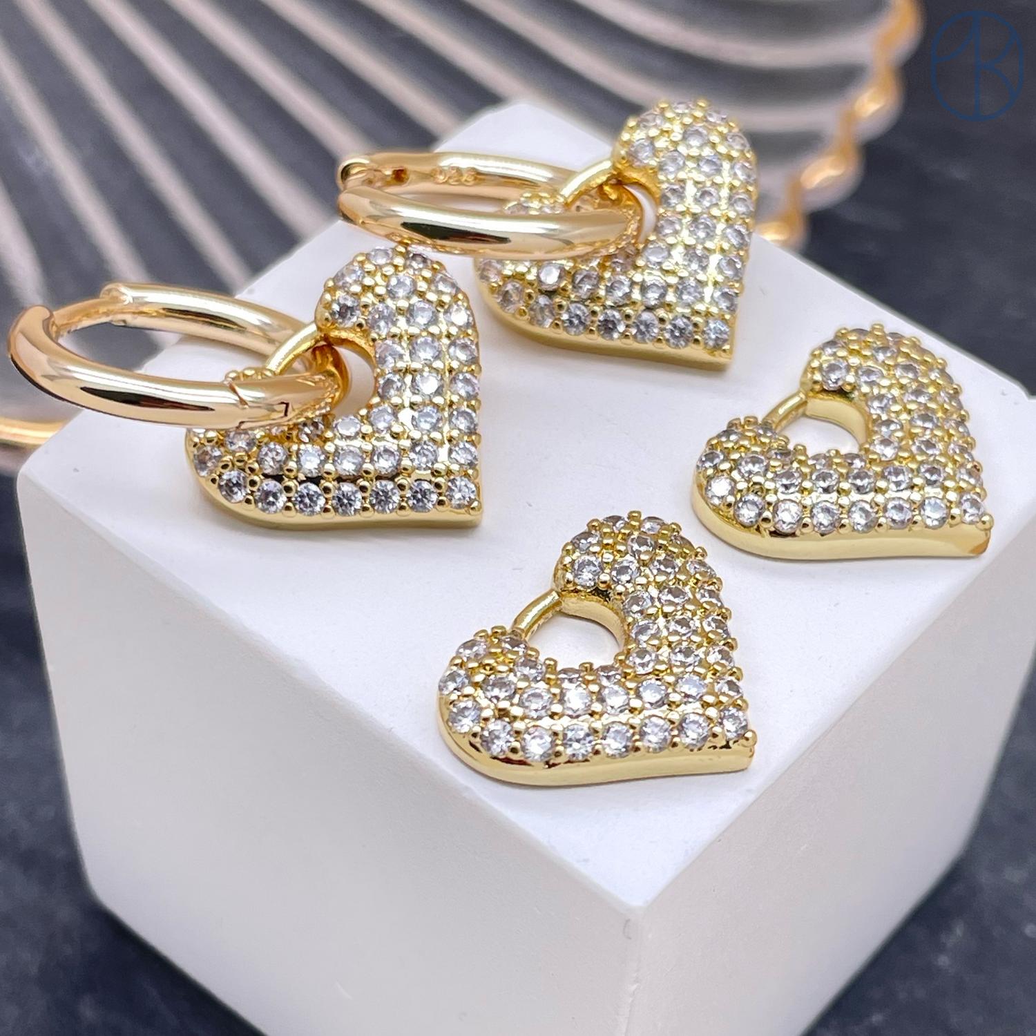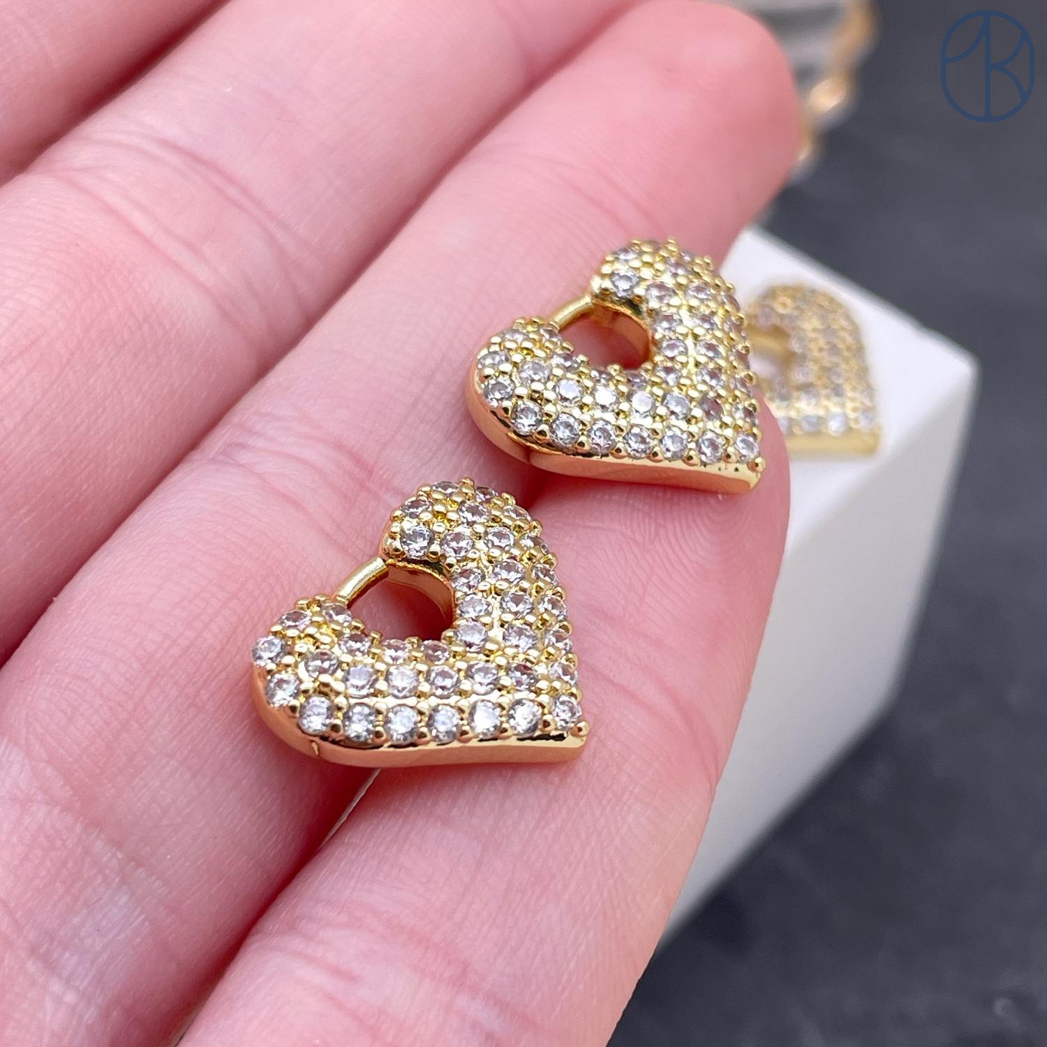 Подвеска бублик сердце цирконы, цвет золото 16х14 мм