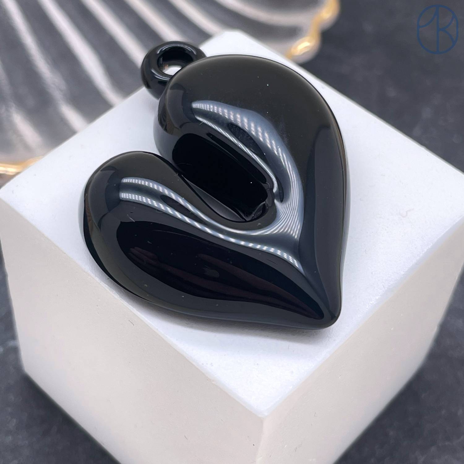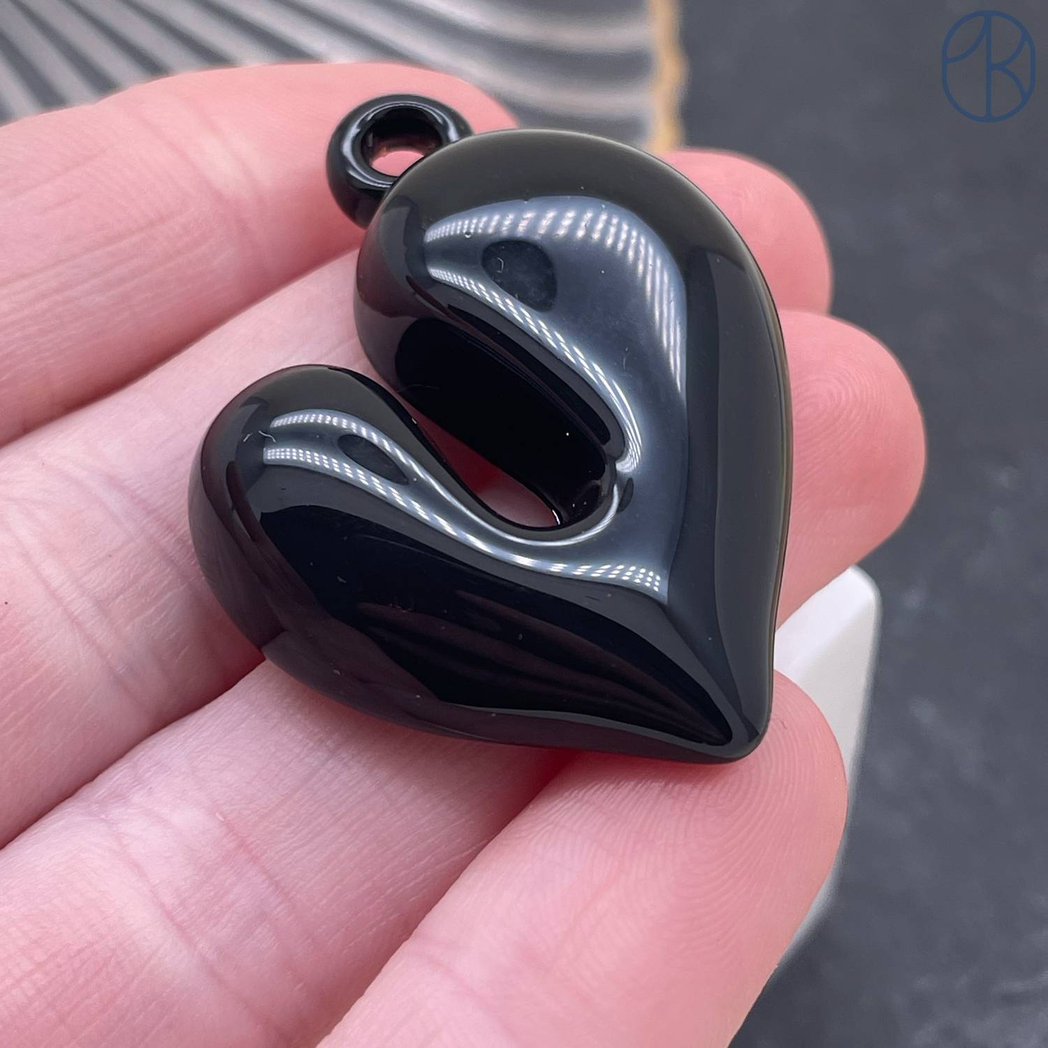 Подвеска сердце черная эмаль 37х33 мм