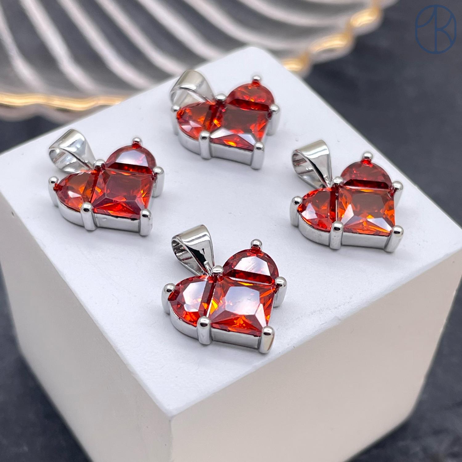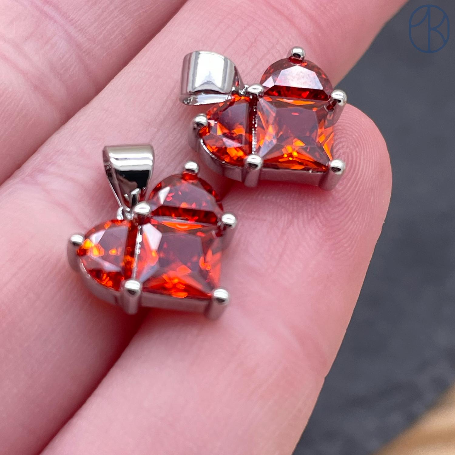 Подвеска Сердце красно-коричневые цирконы, цвет серебро 12х12 мм