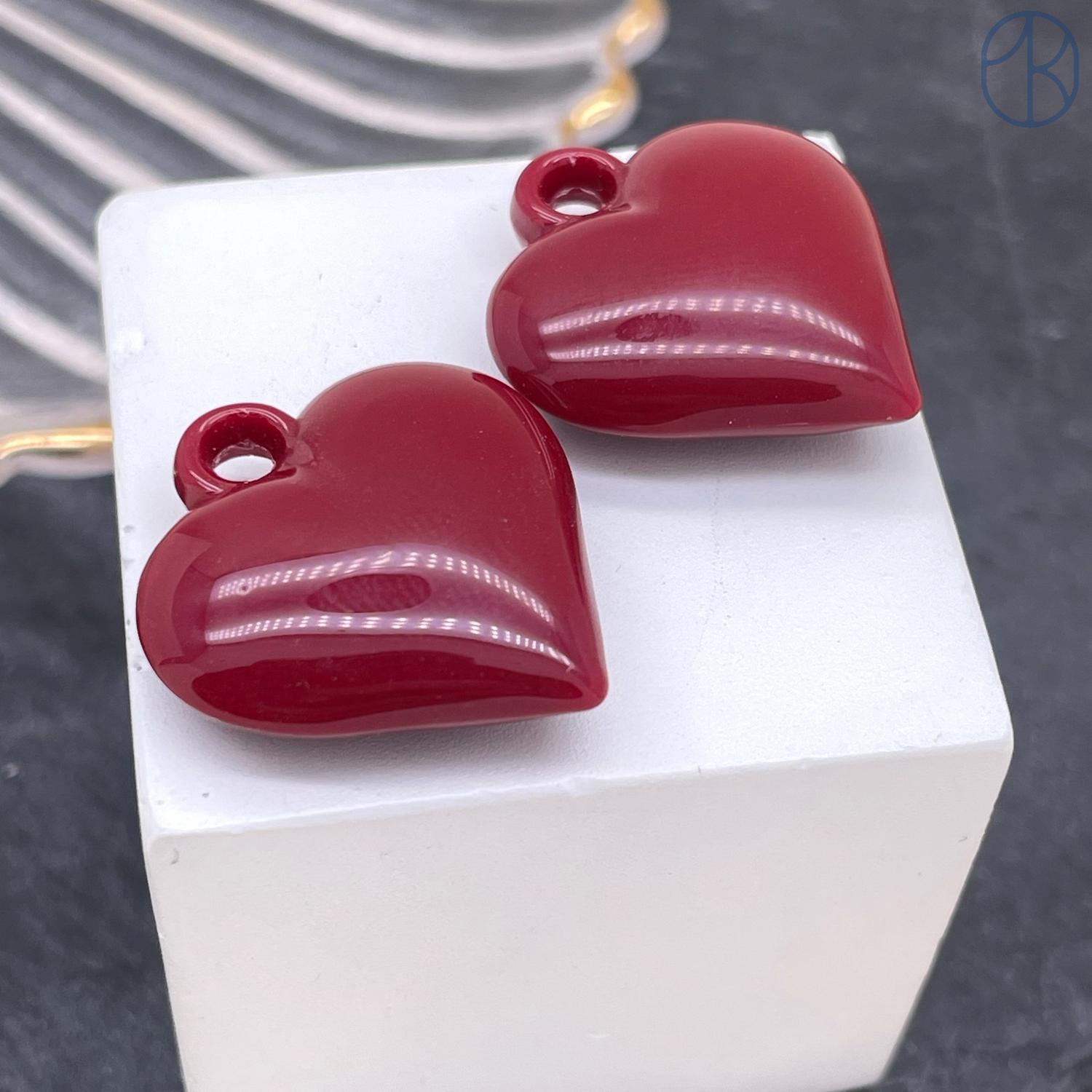 Подвеска сердце темно-красная эмаль 24х22 мм