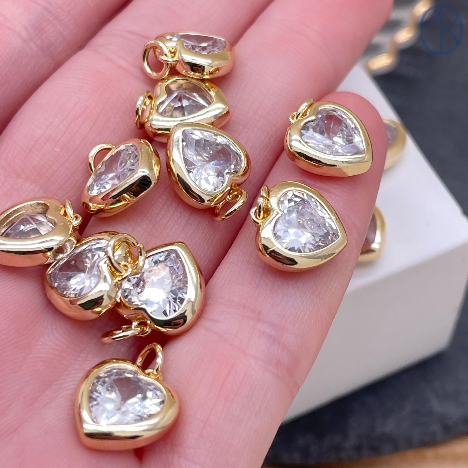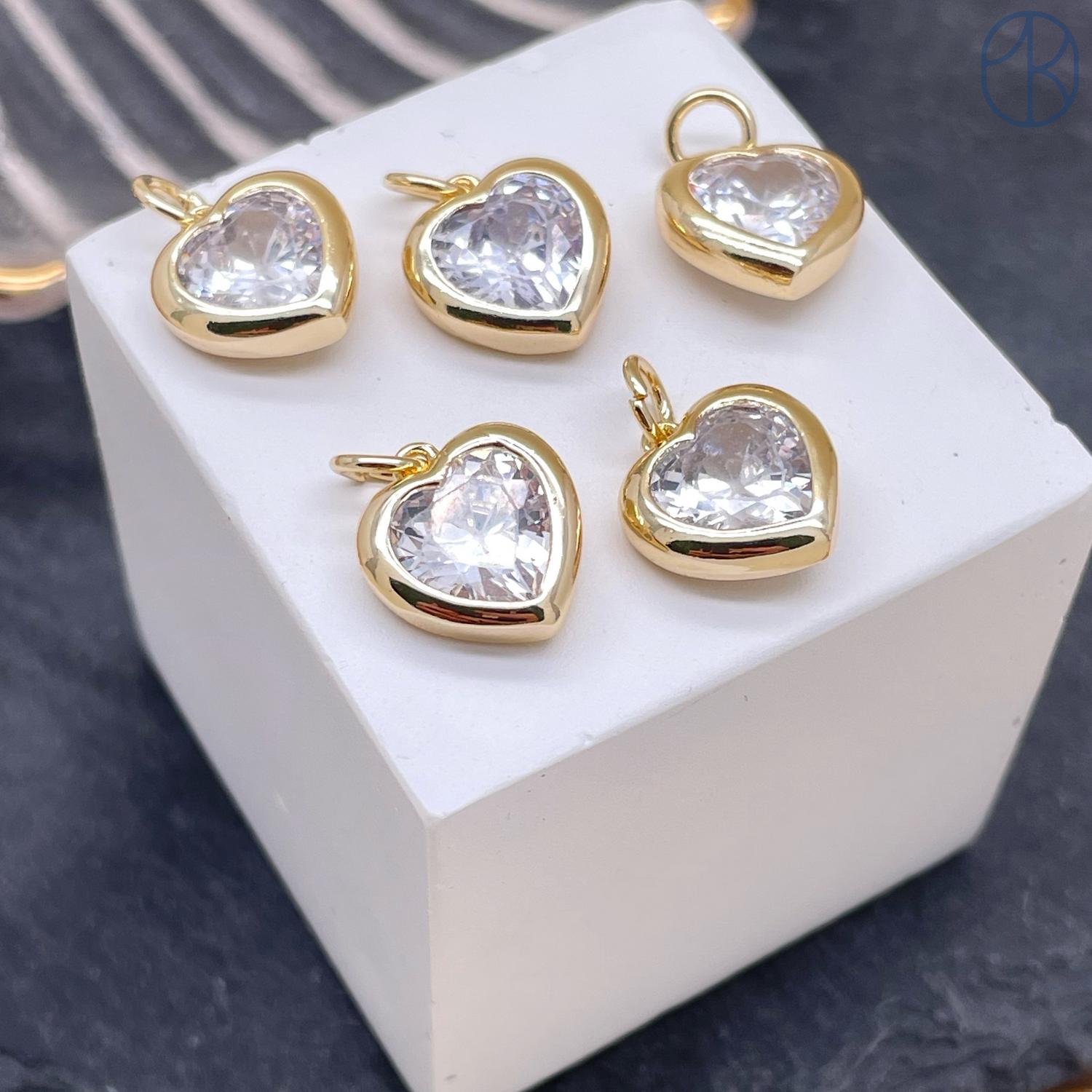 Подвеска сердце циркон, цвет золото 11 мм