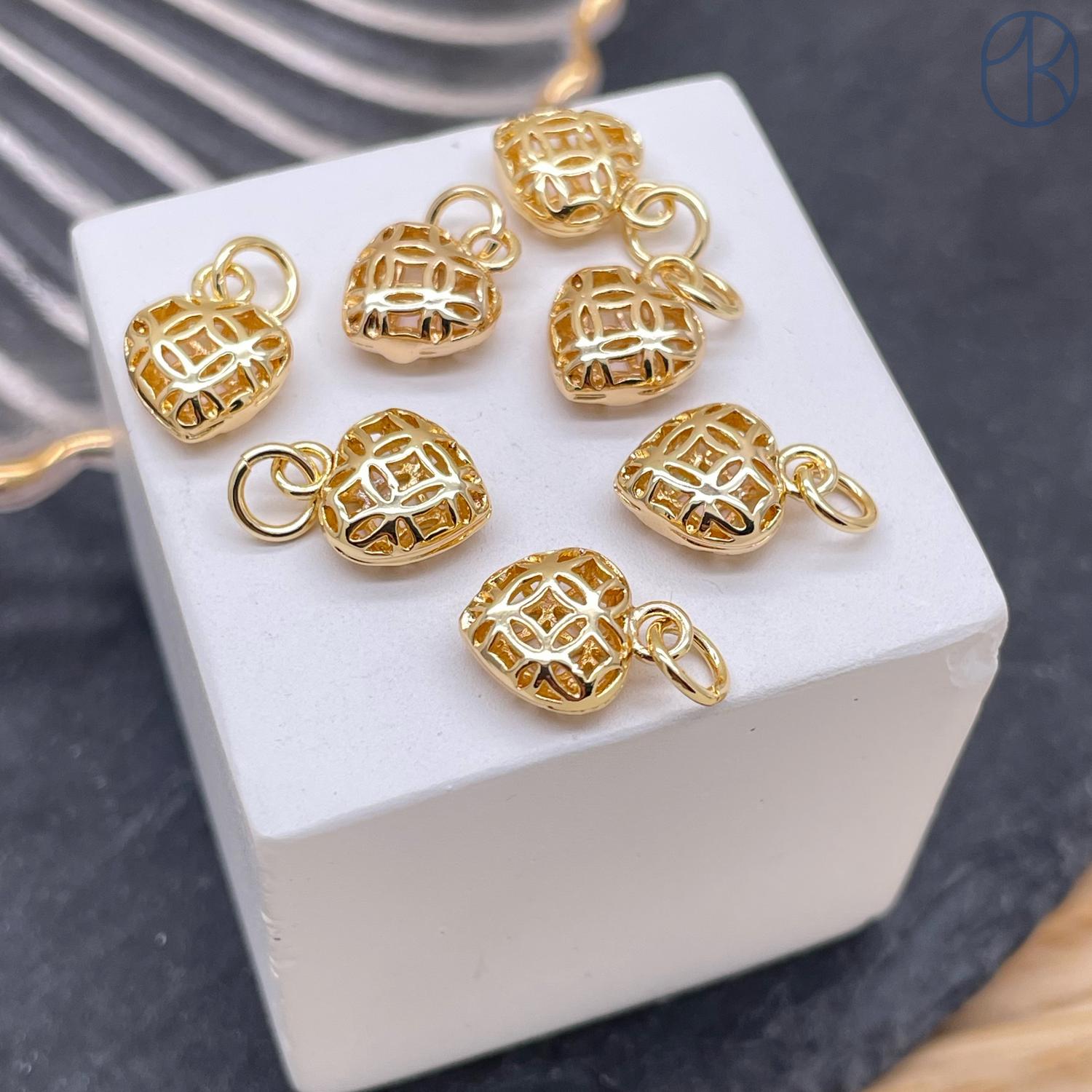 Подвеска Сердце розовые цирконы, цвет золото 10х11 мм