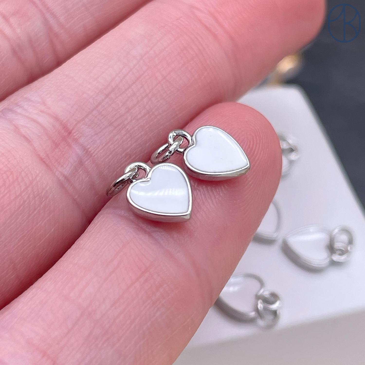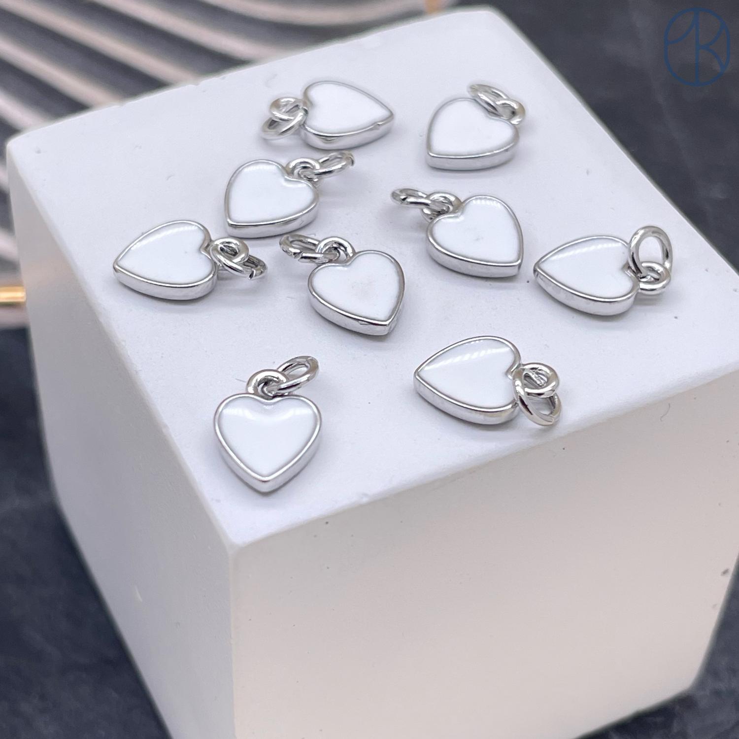 Подвеска сердце белая эмаль, цвет серебро 9 мм
