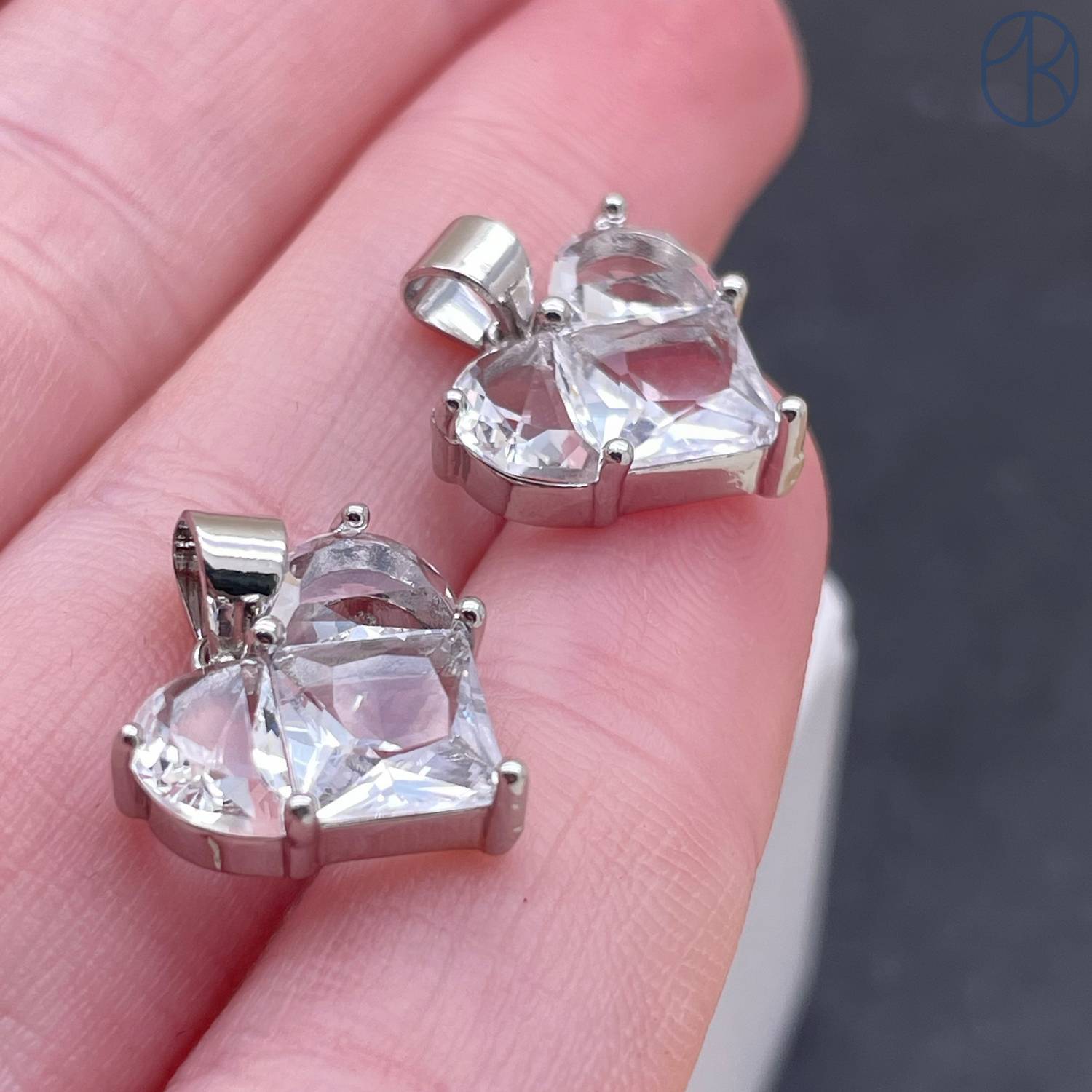 Подвеска Сердце прозрачные цирконы, цвет серебро 14х15 мм
