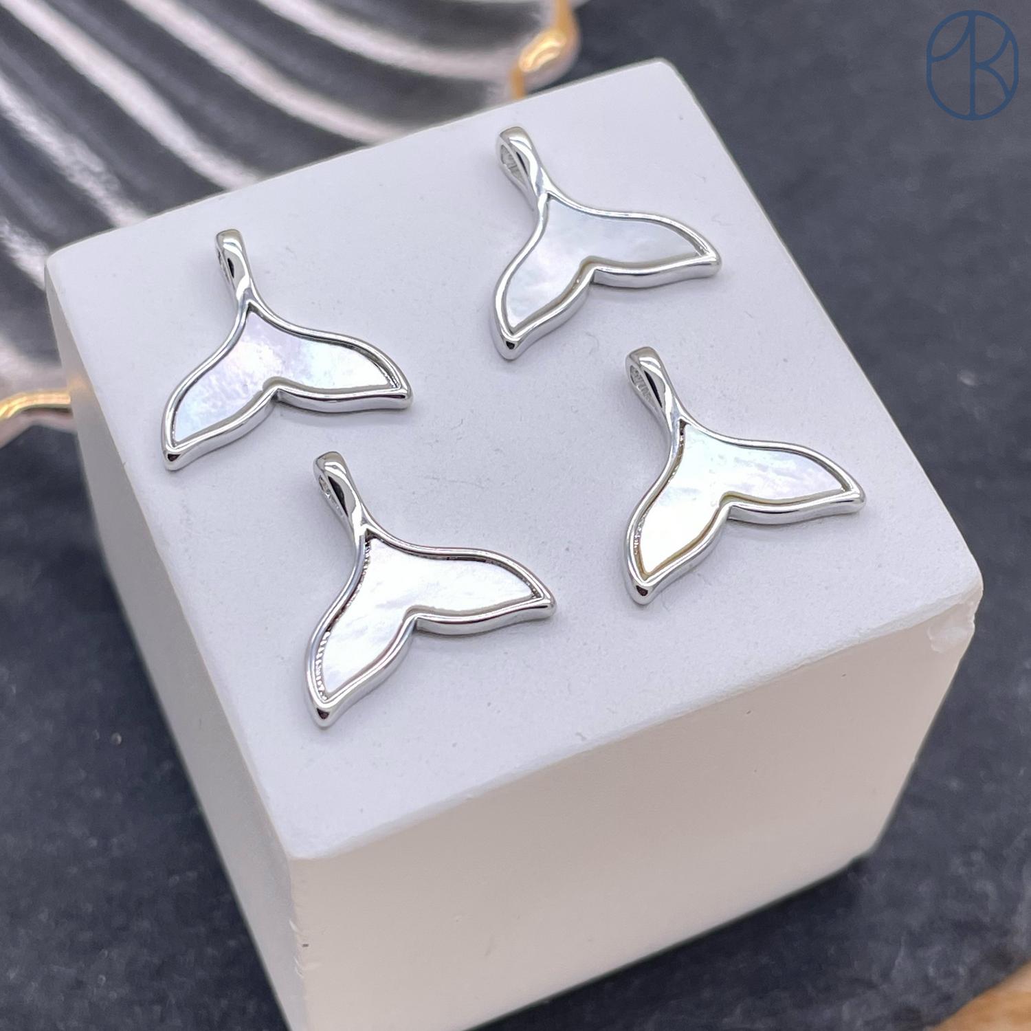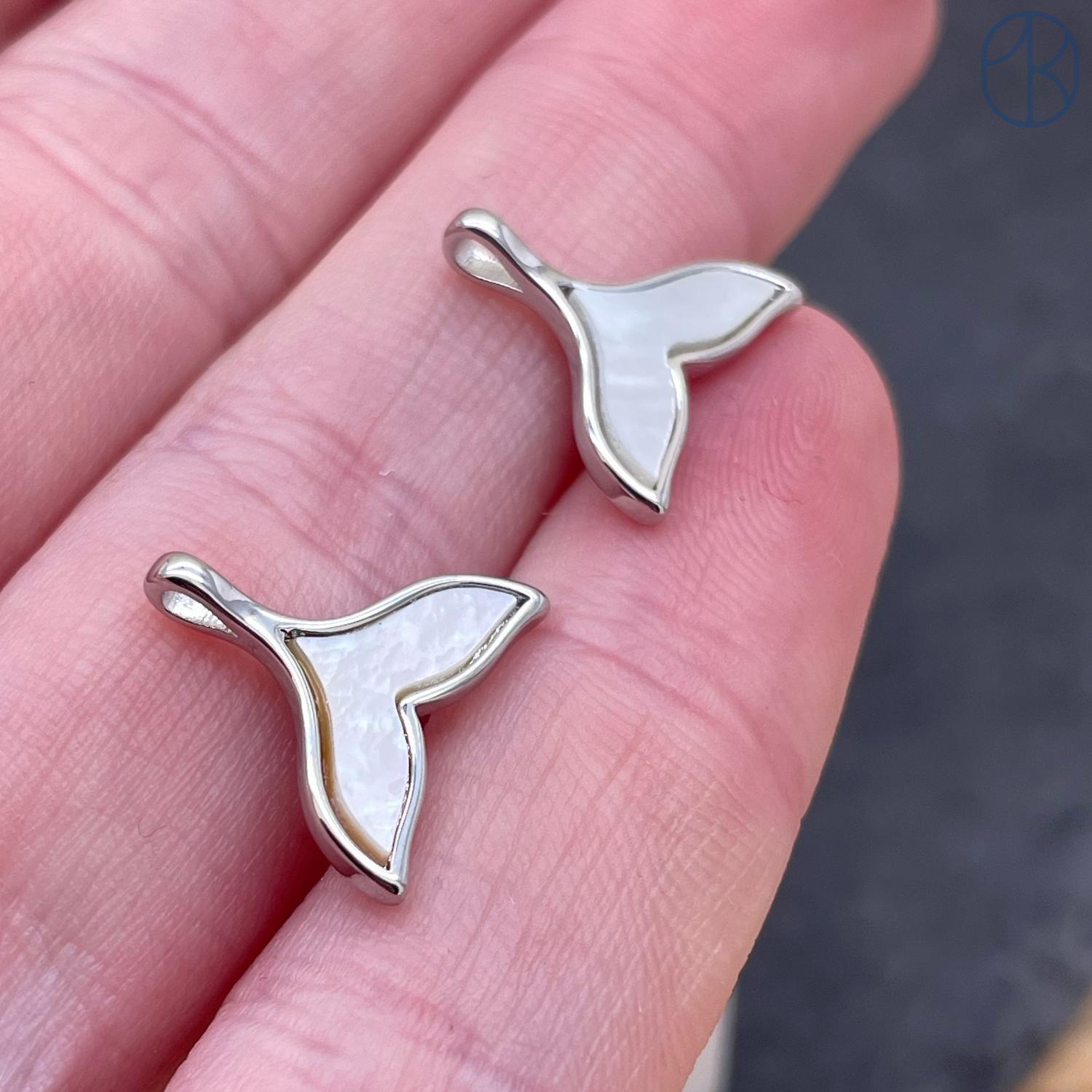 Подвеска хвост кита перламутр, цвет серебро 13 мм
