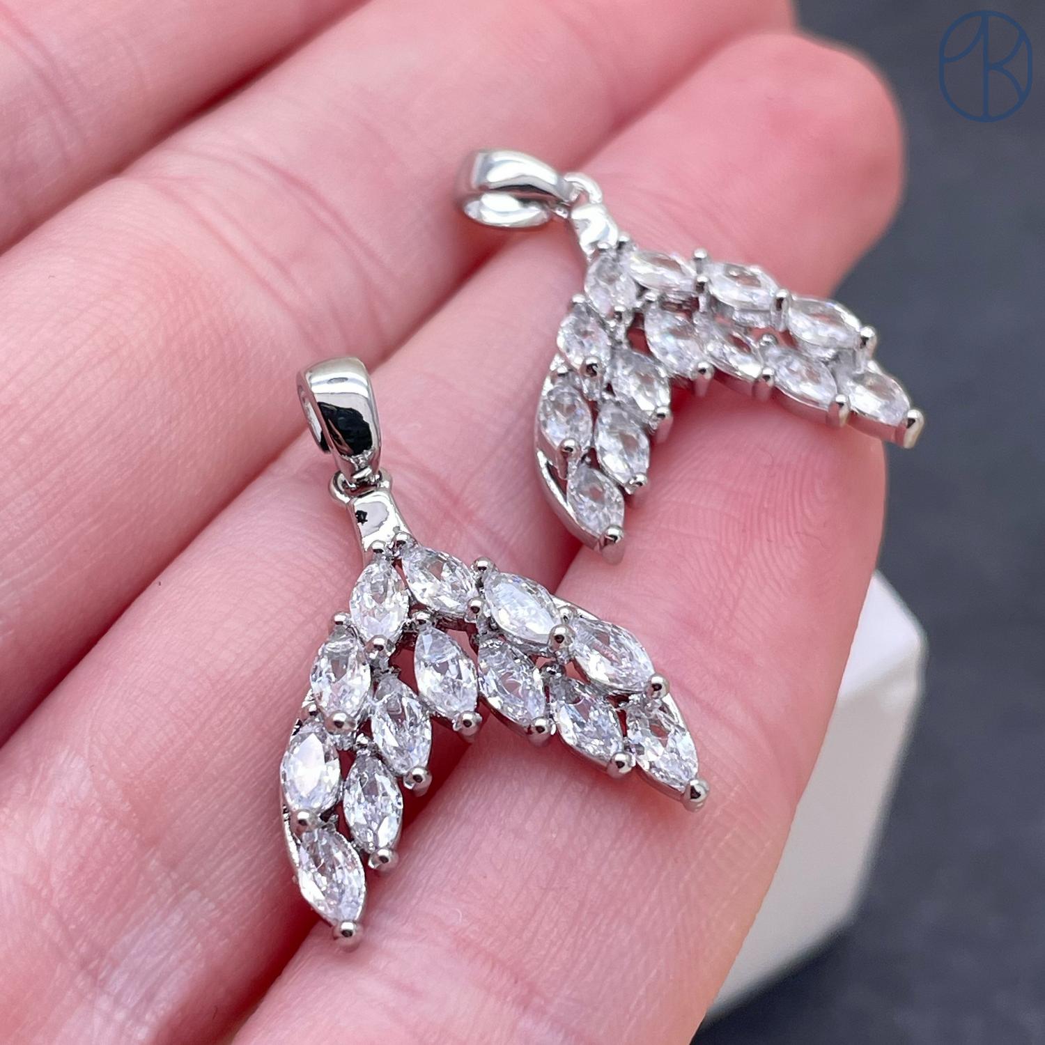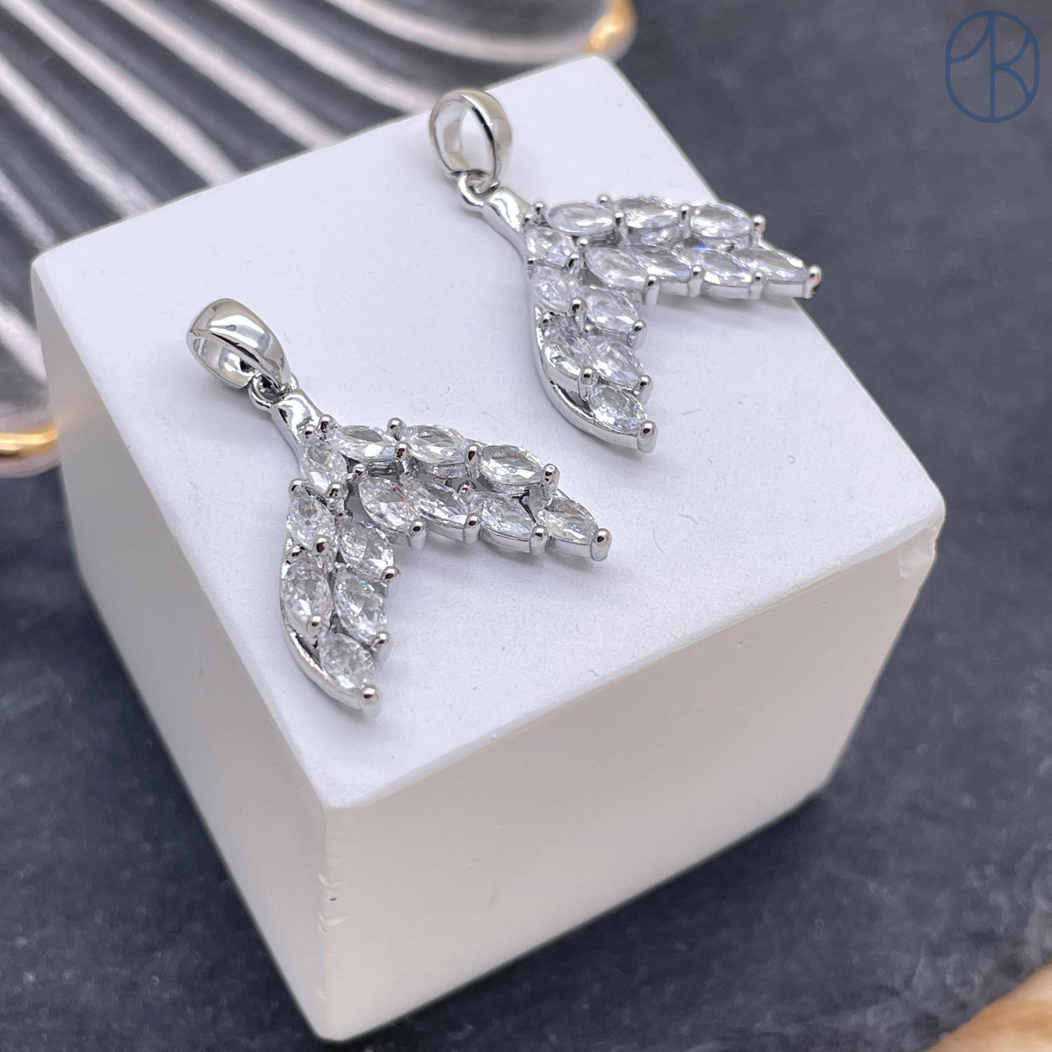 Подвеска хвост кита цирконы, цвет серебро 21х17 мм