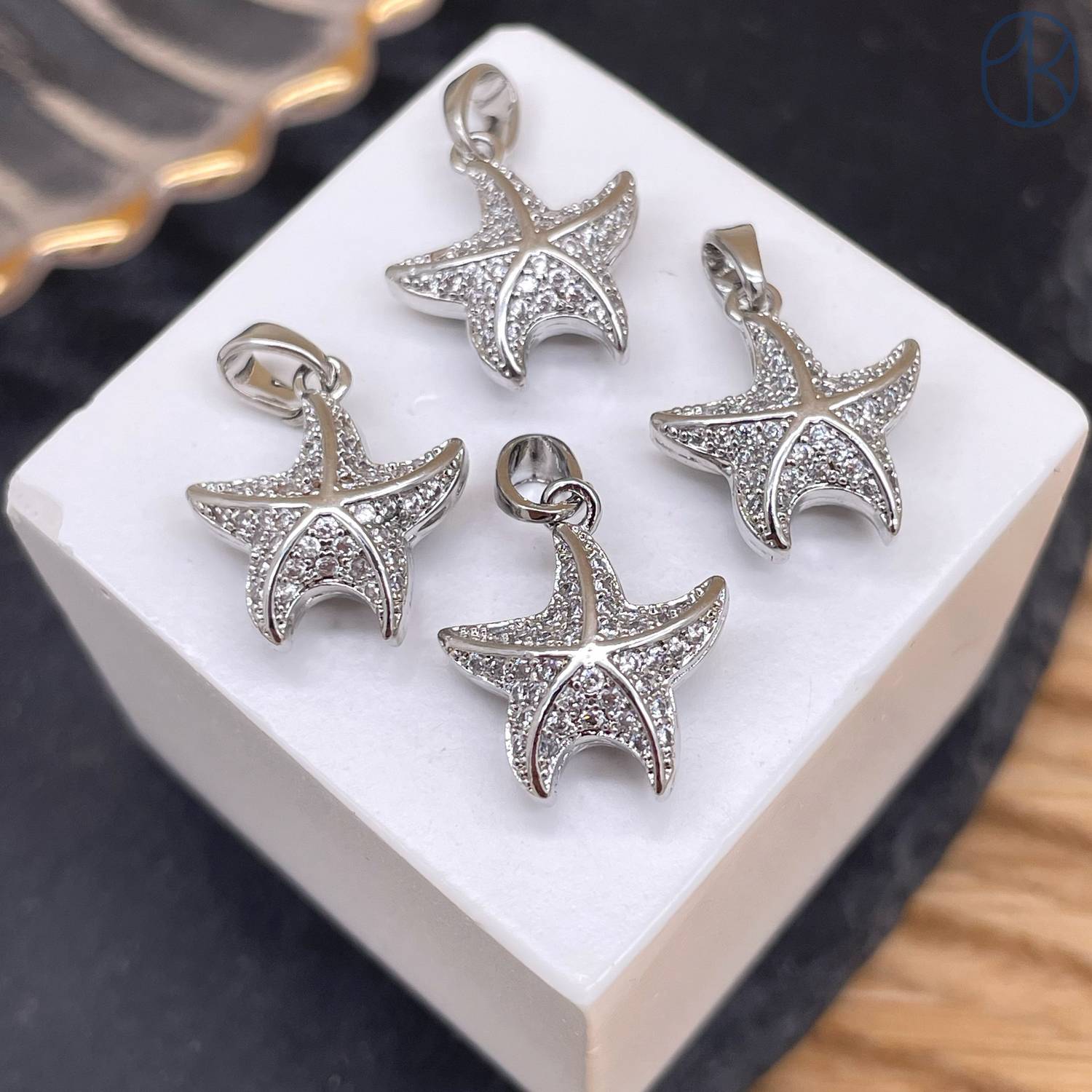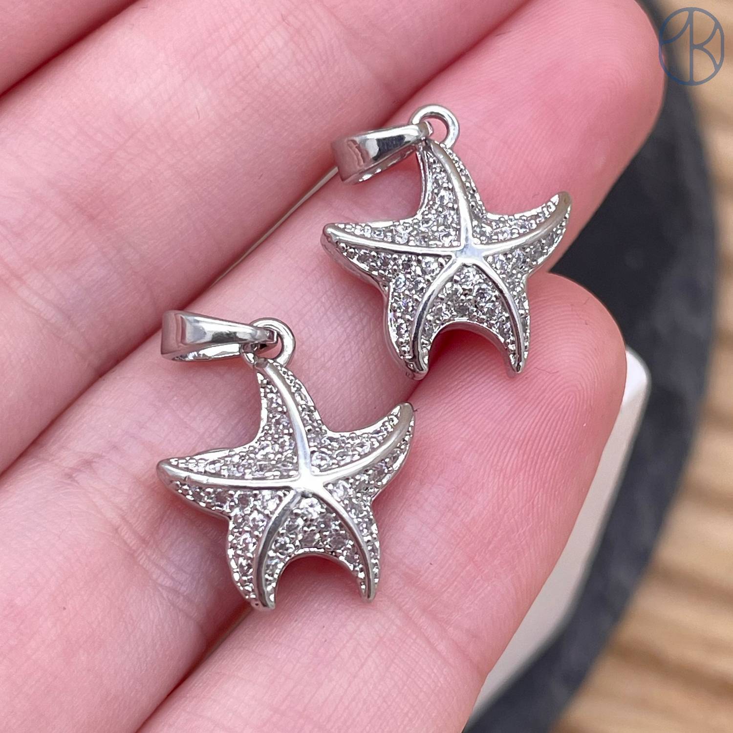 Подвеска морская звезда цирконы, цвет серебро 20 мм