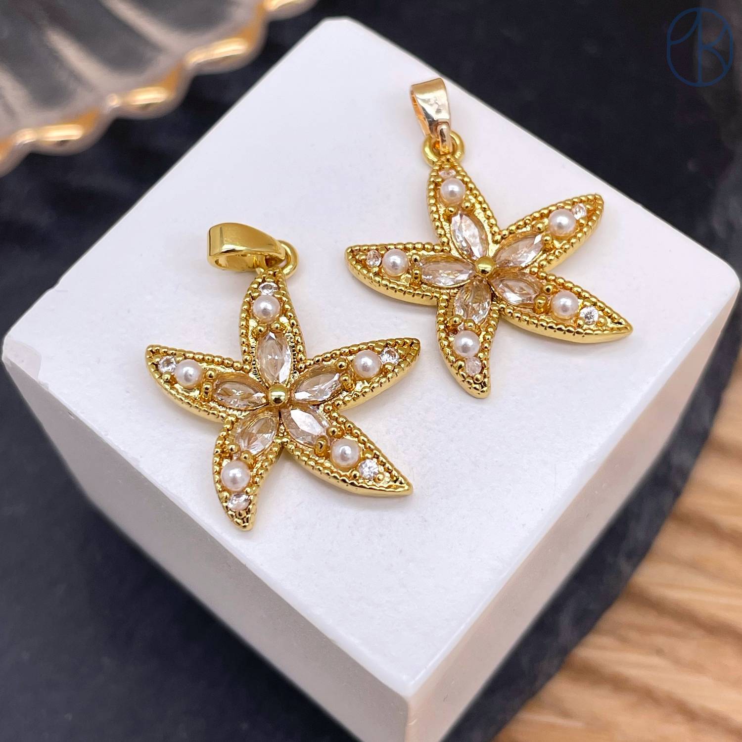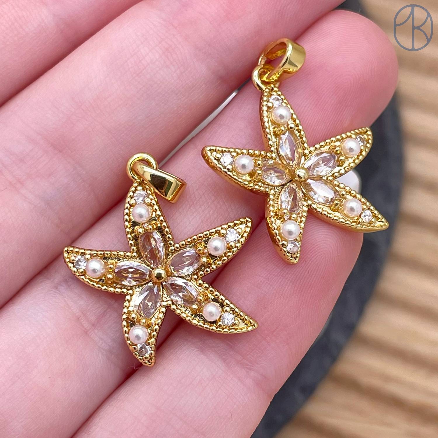 Подвеска морская звезда цирконы, цвет золото 20 мм