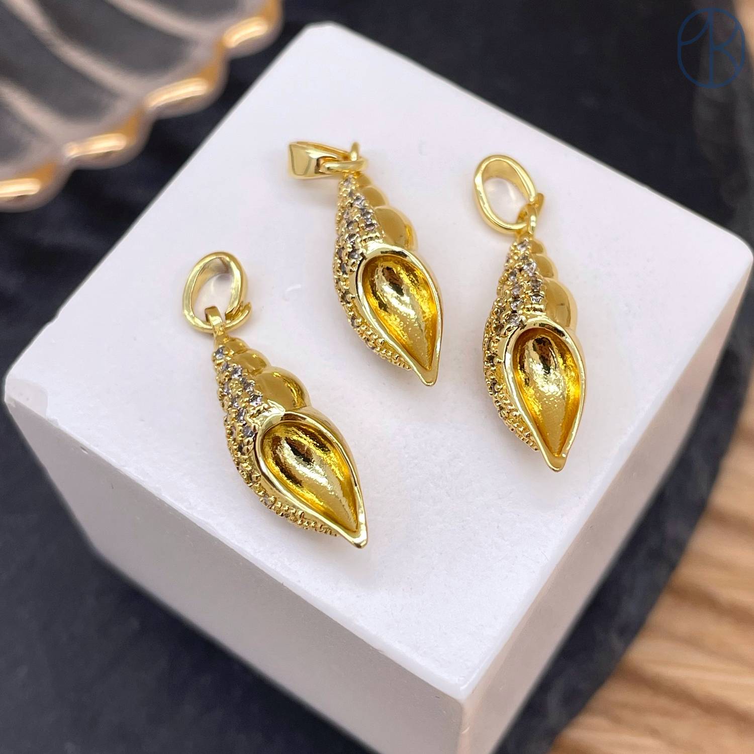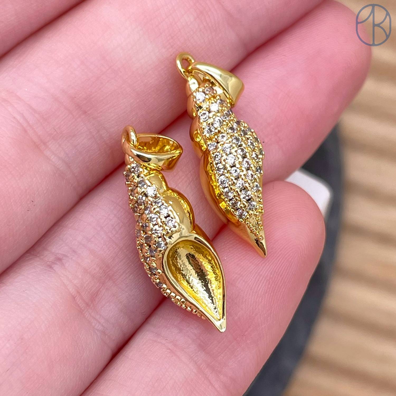 Подвеска ракушка цирконы, цвет золото 20 мм
