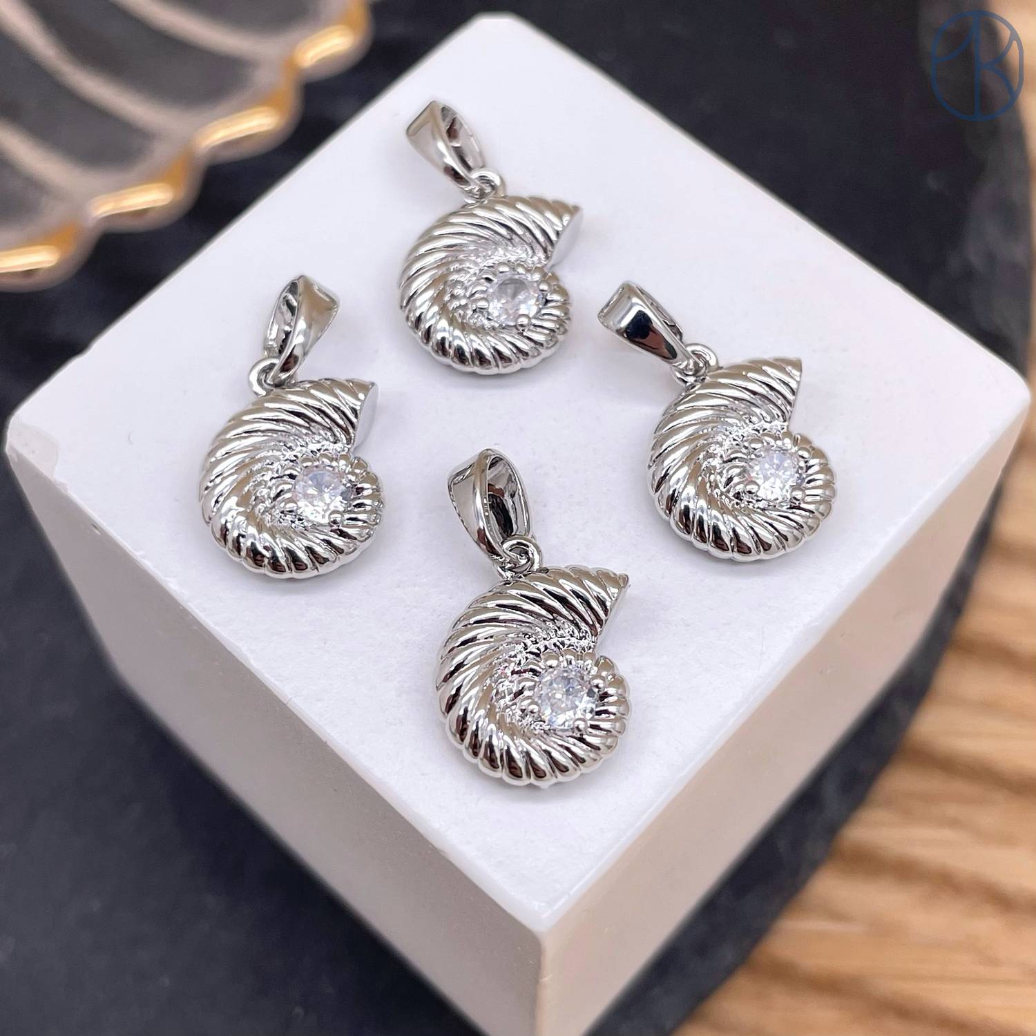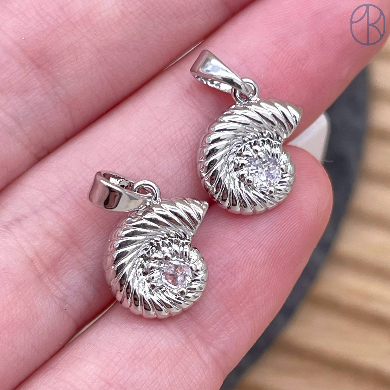 Подвеска ракушка улитка циркон, цвет серебро 10 мм