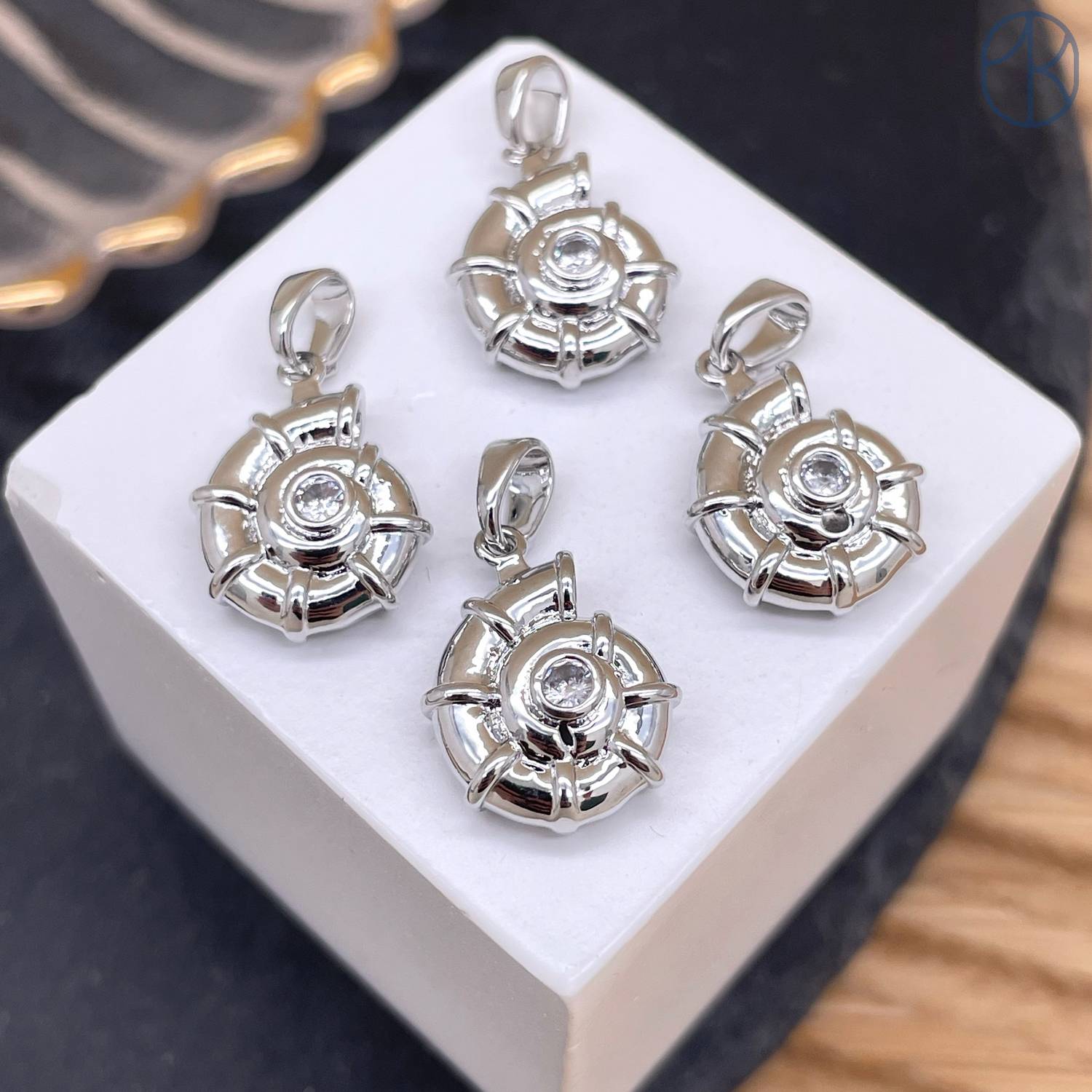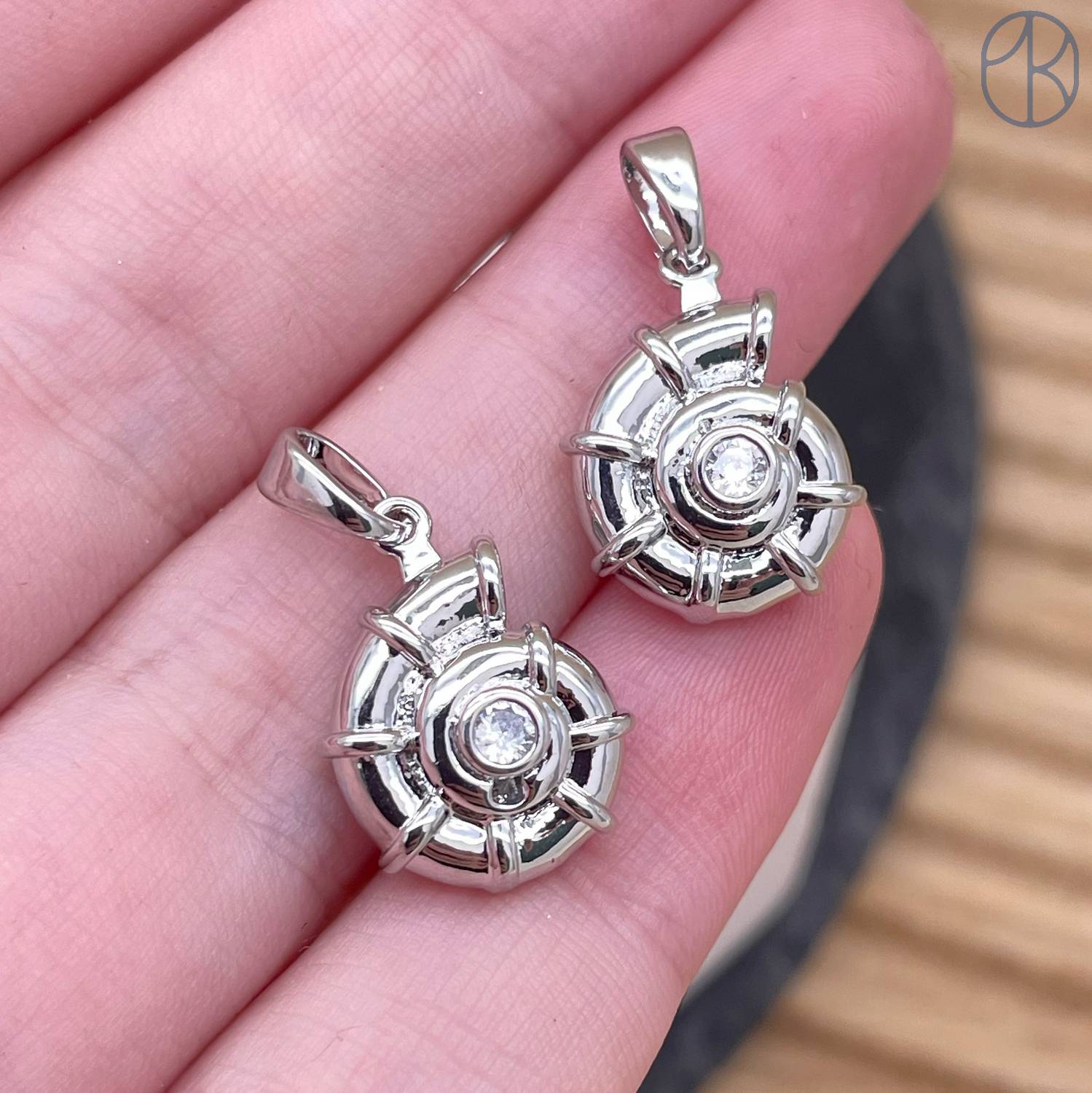 Подвеска ракушка улитка циркон, цвет серебро 11 мм