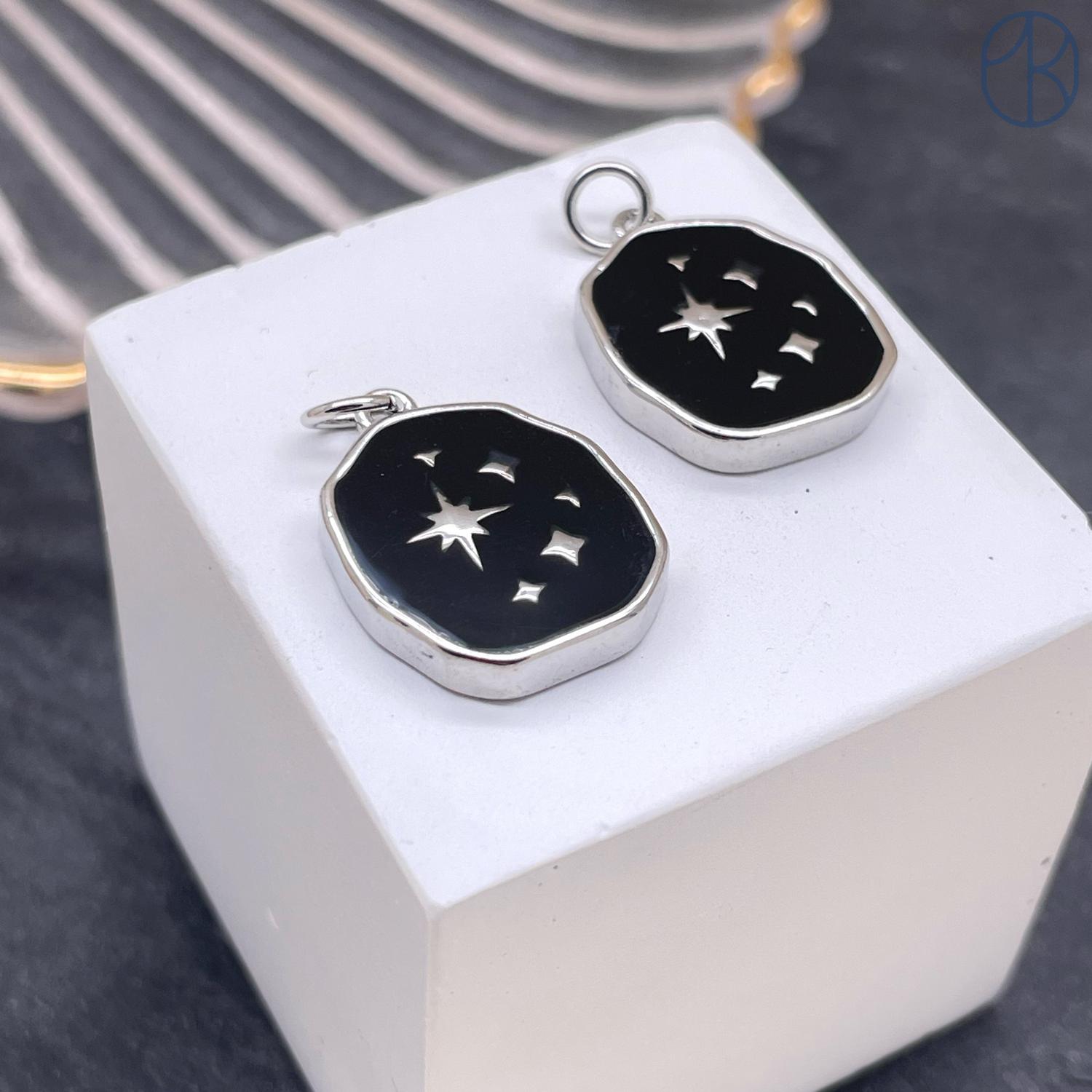Подвеска северная звезда черная эмаль, цвет серебро 16х15 мм
