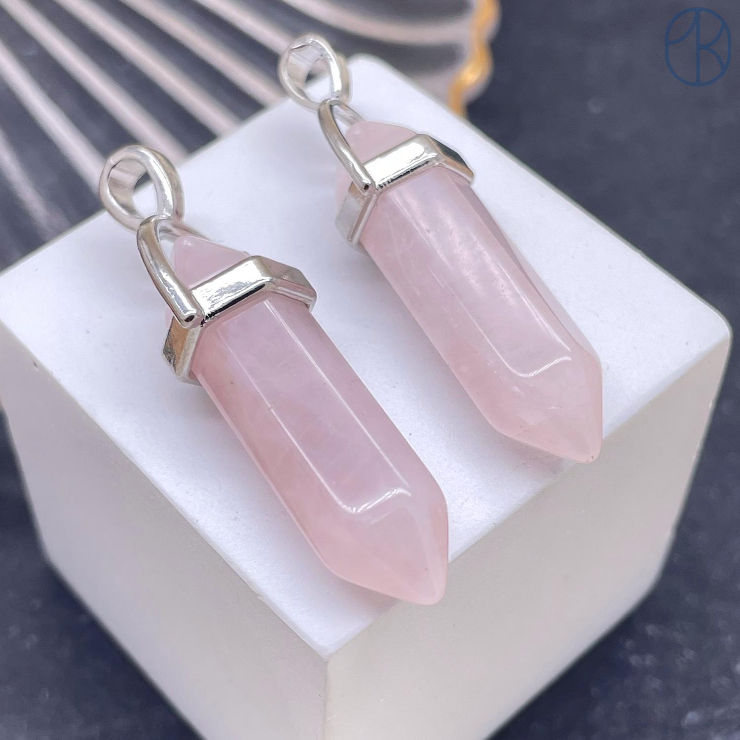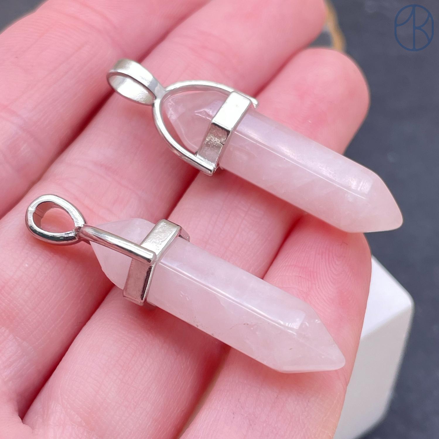 Подвеска маятник Розовый кварц, цвет серебро 42х9 мм