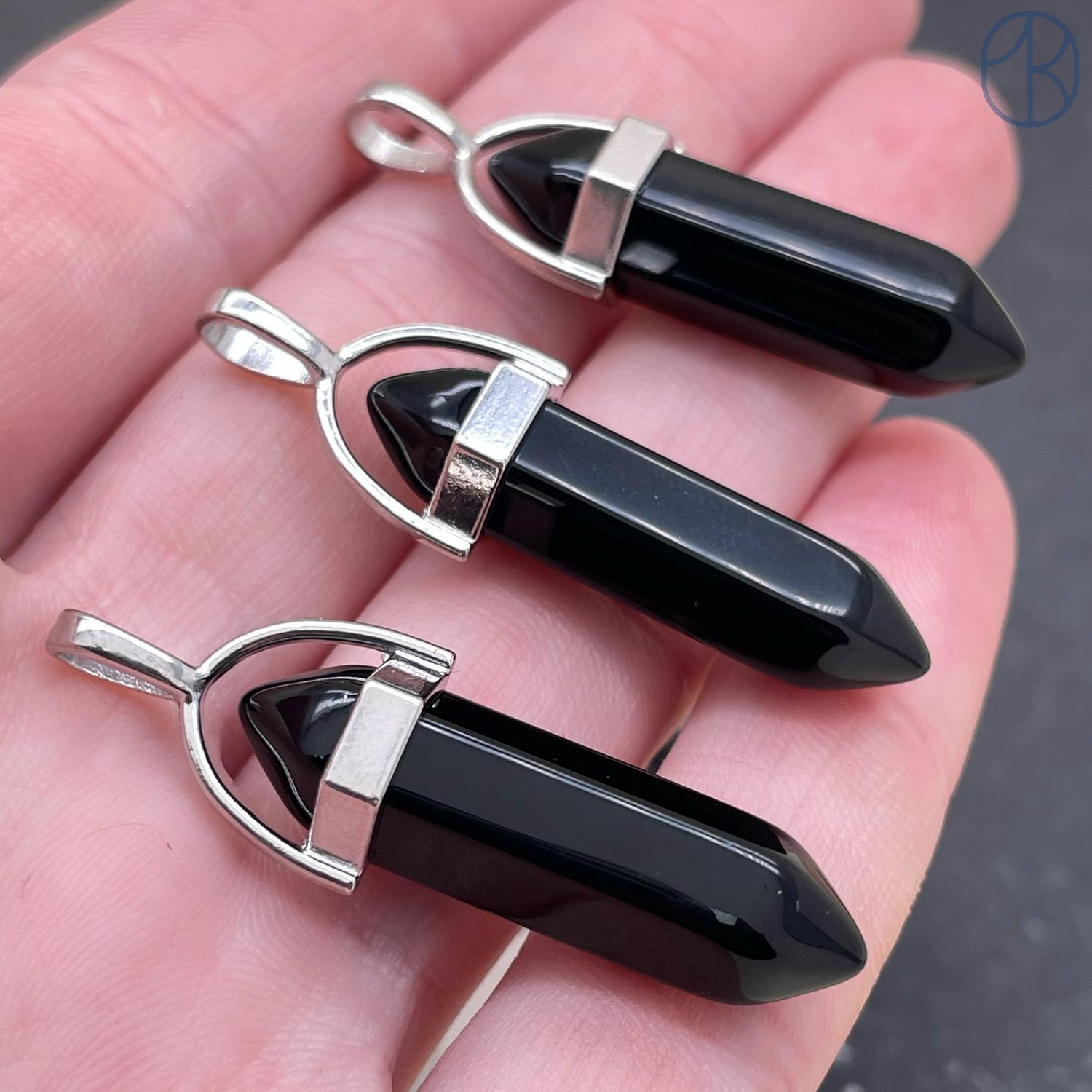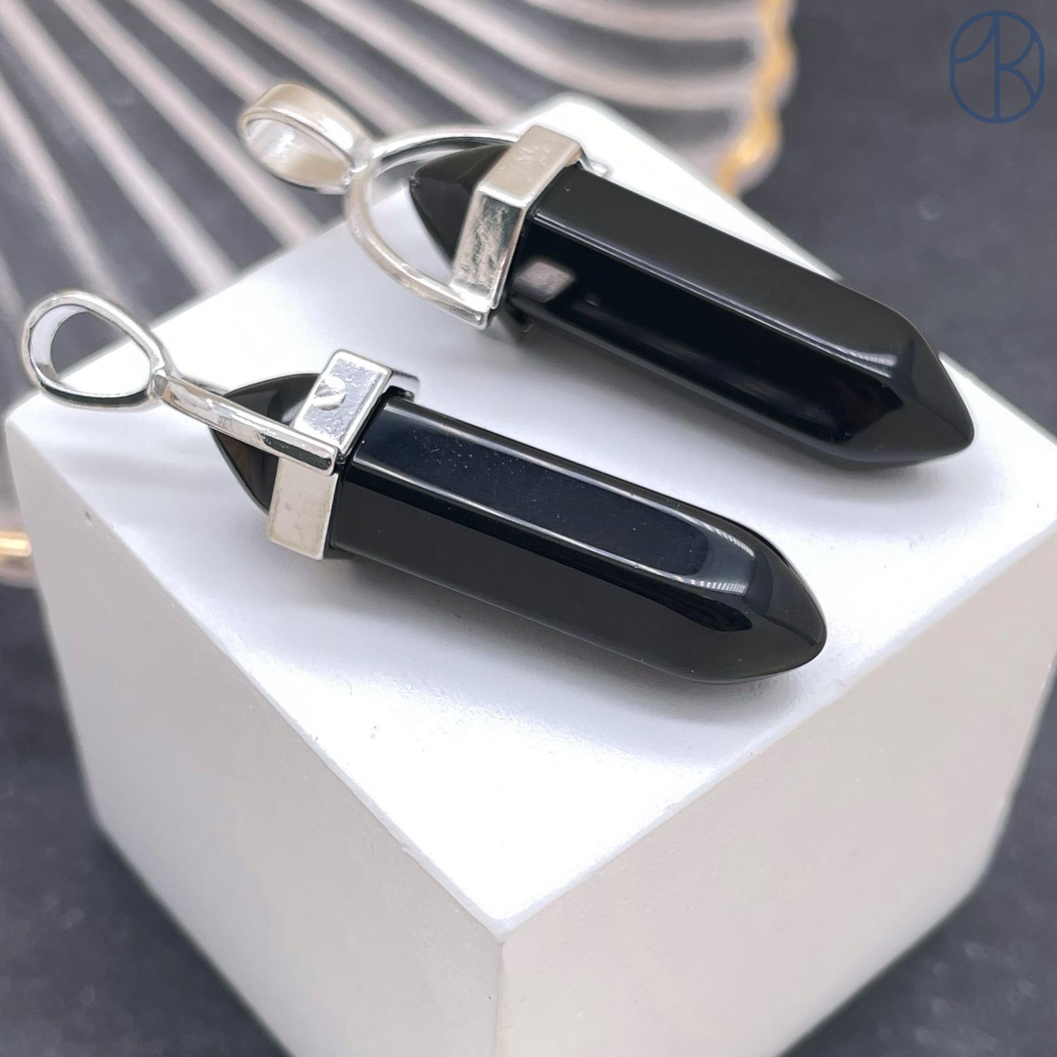 Подвеска маятник Агат черный, цвет серебро 42х9 мм