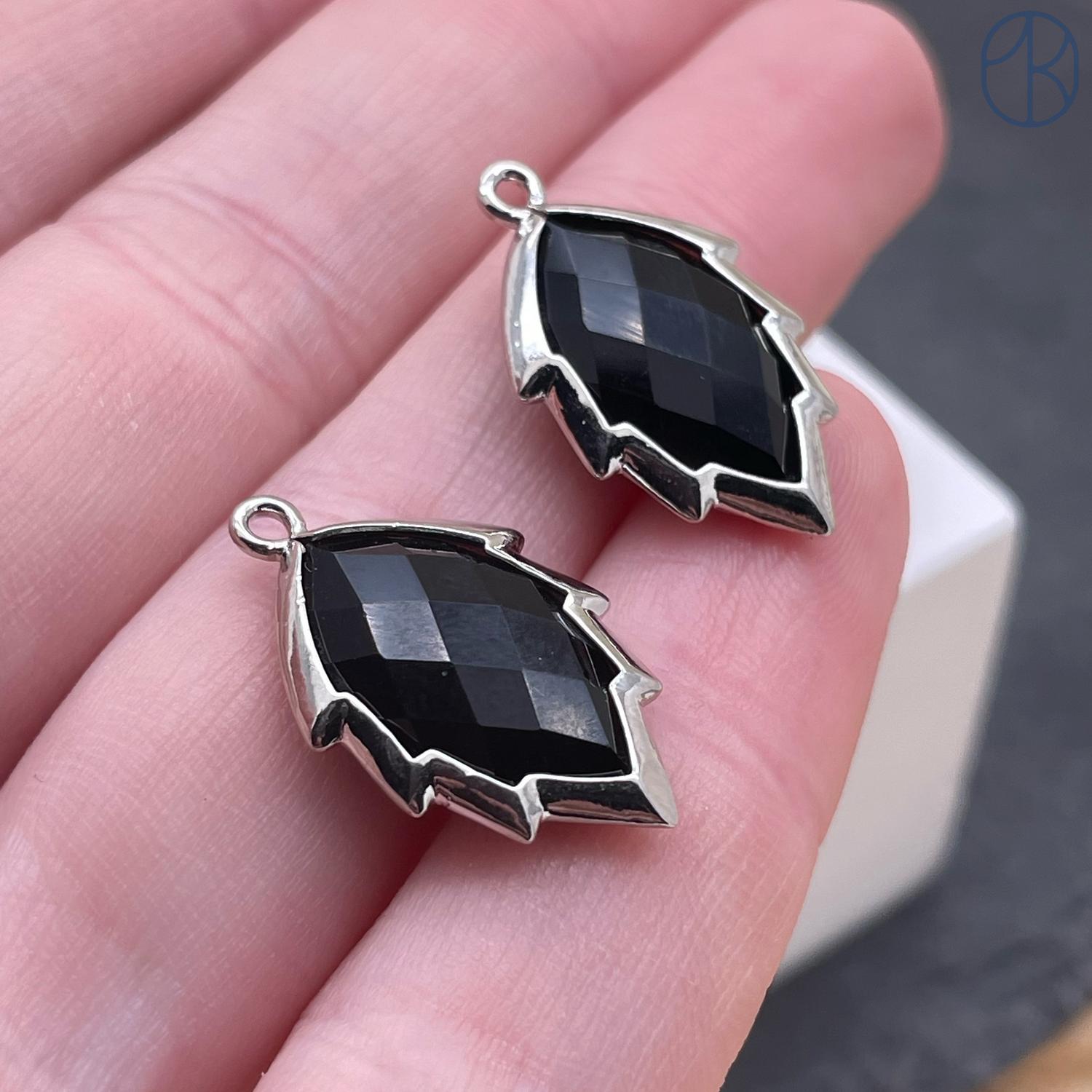 Подвеска лист Агат черный, цвет серебро, 13х19 мм