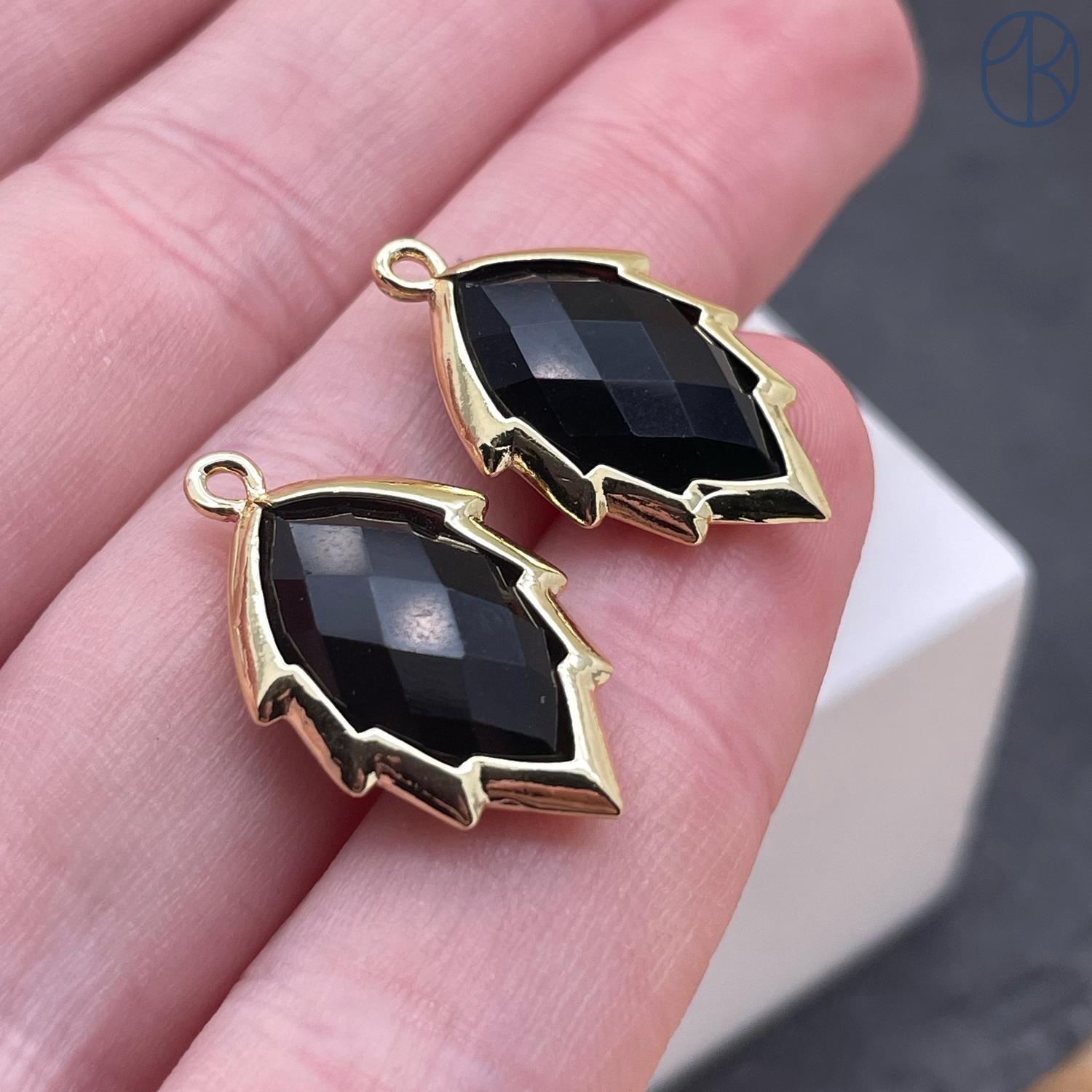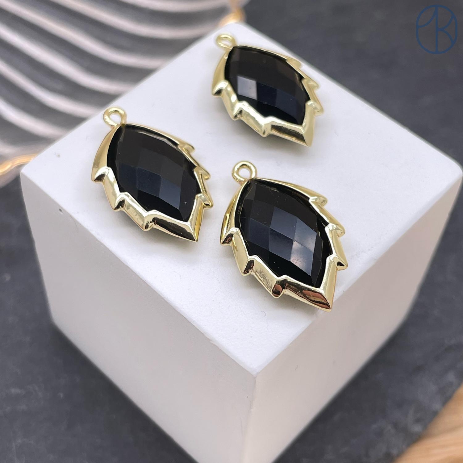 Подвеска лист Агат черный, цвет золото, 13х19 мм