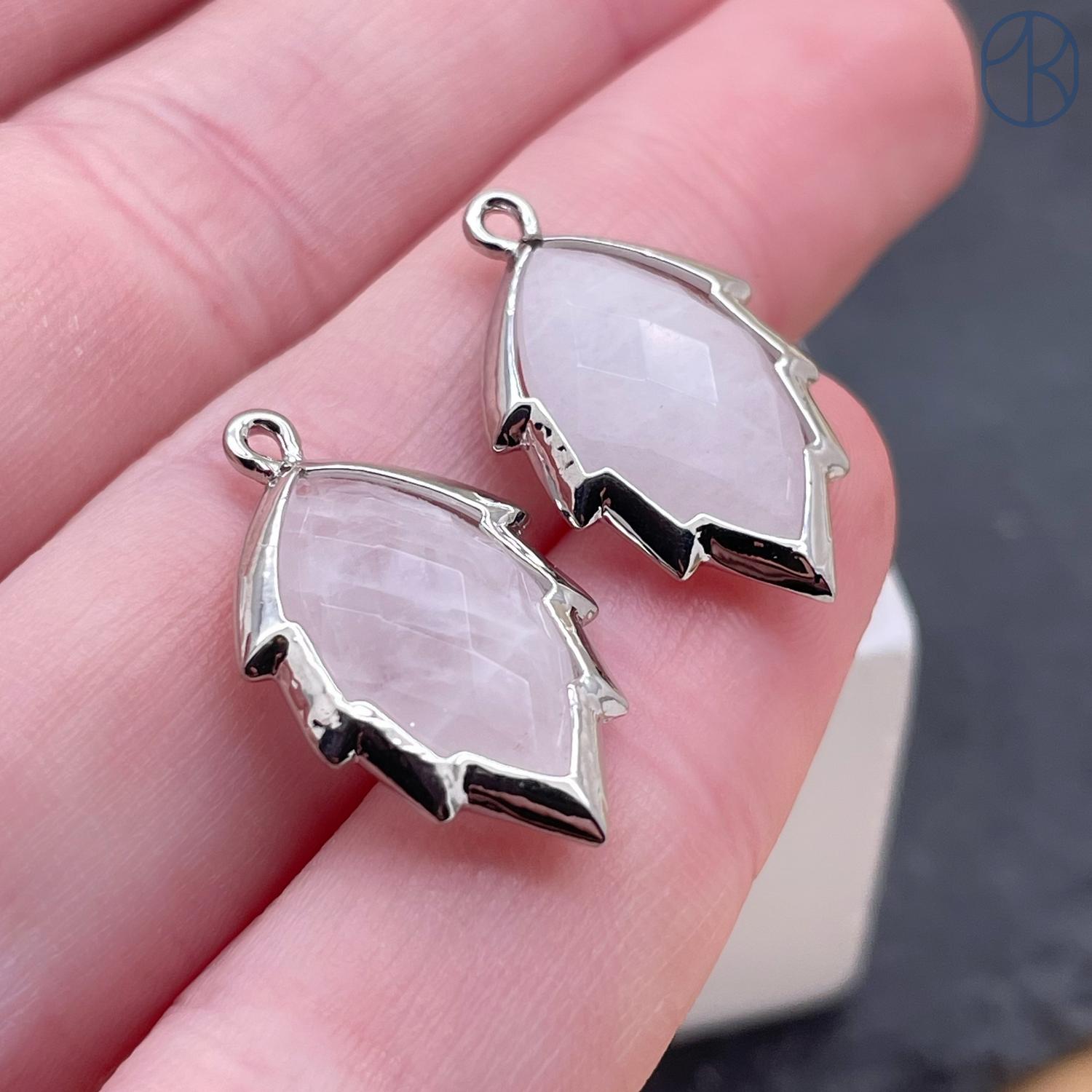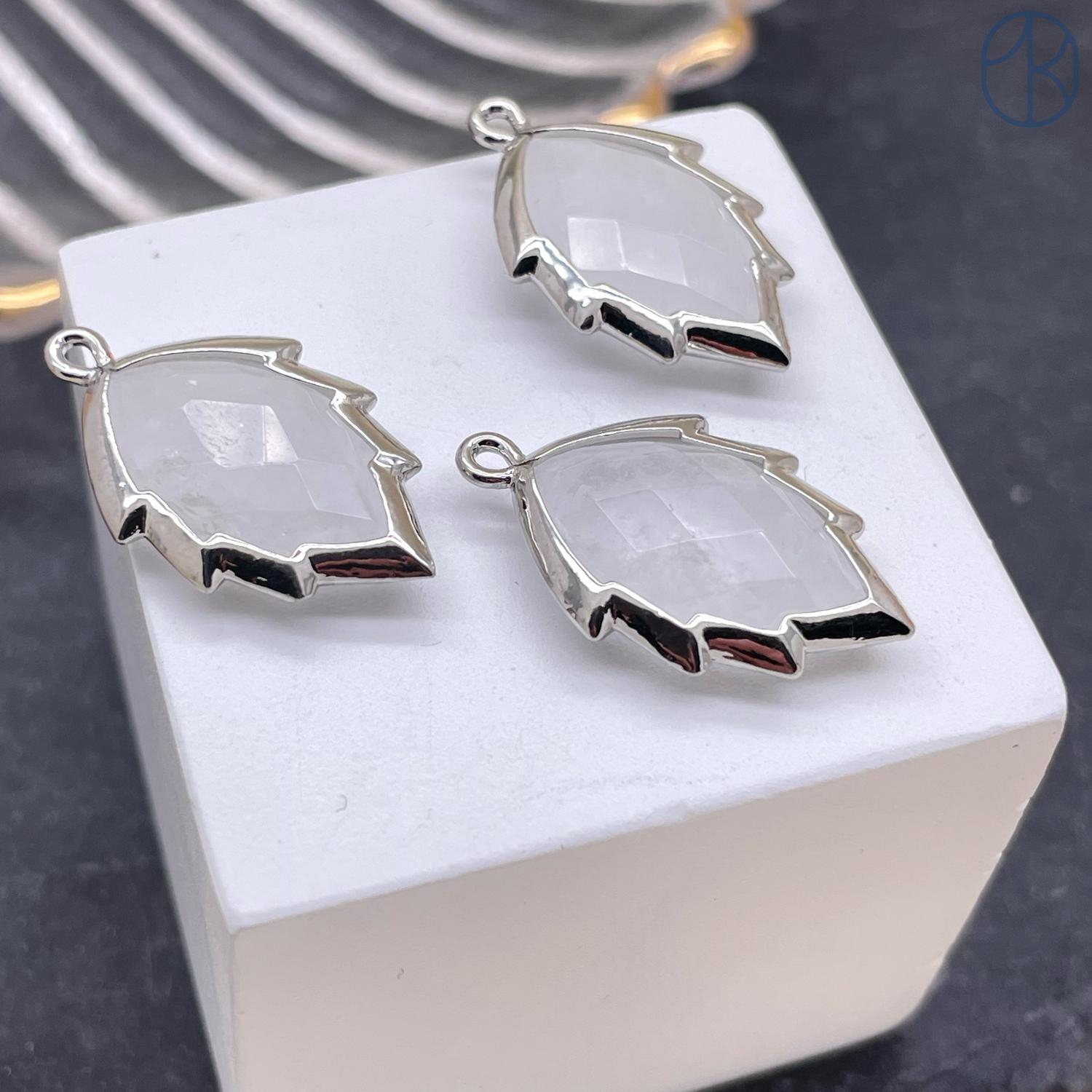 Подвеска лист Кварц белый, цвет серебро, 13х19 мм