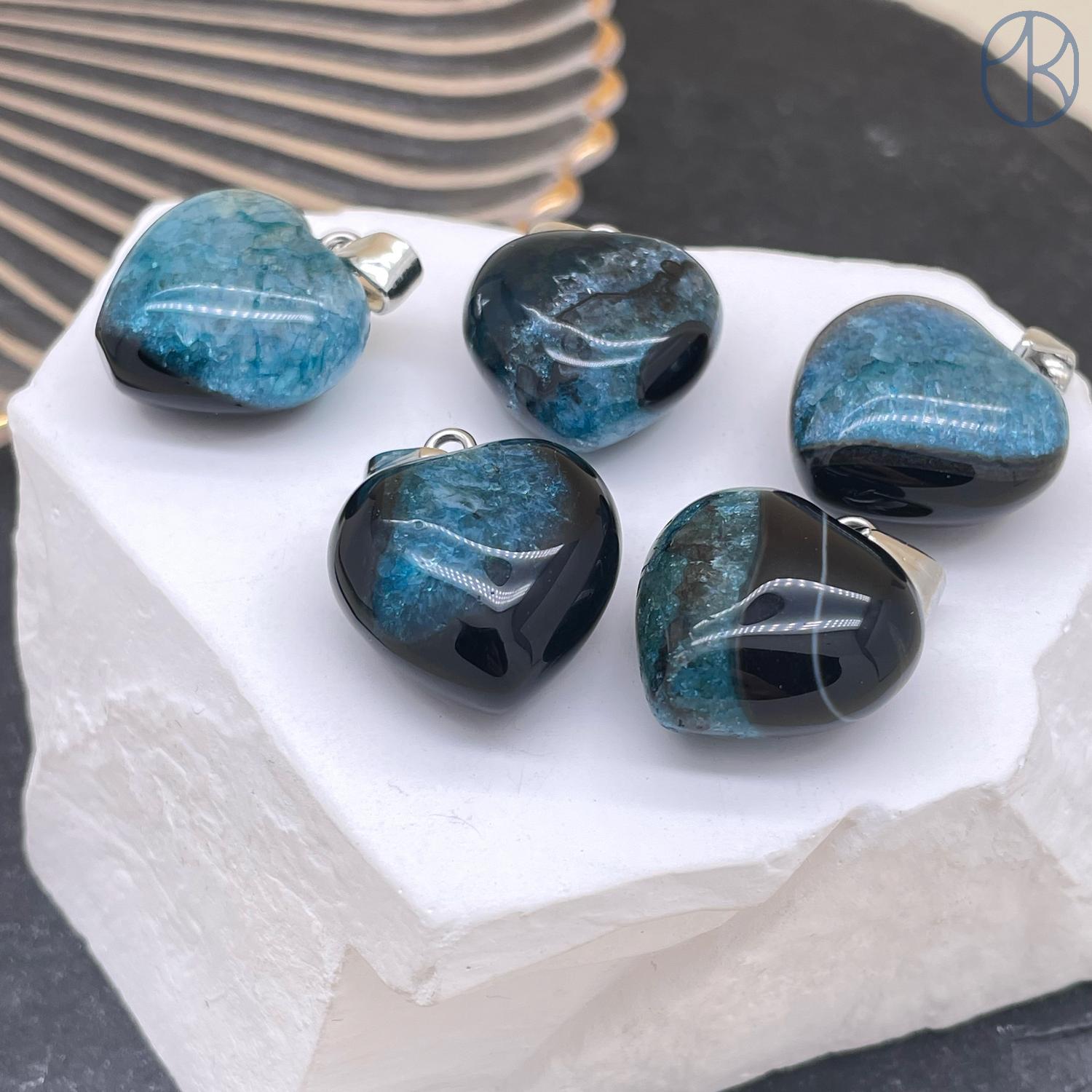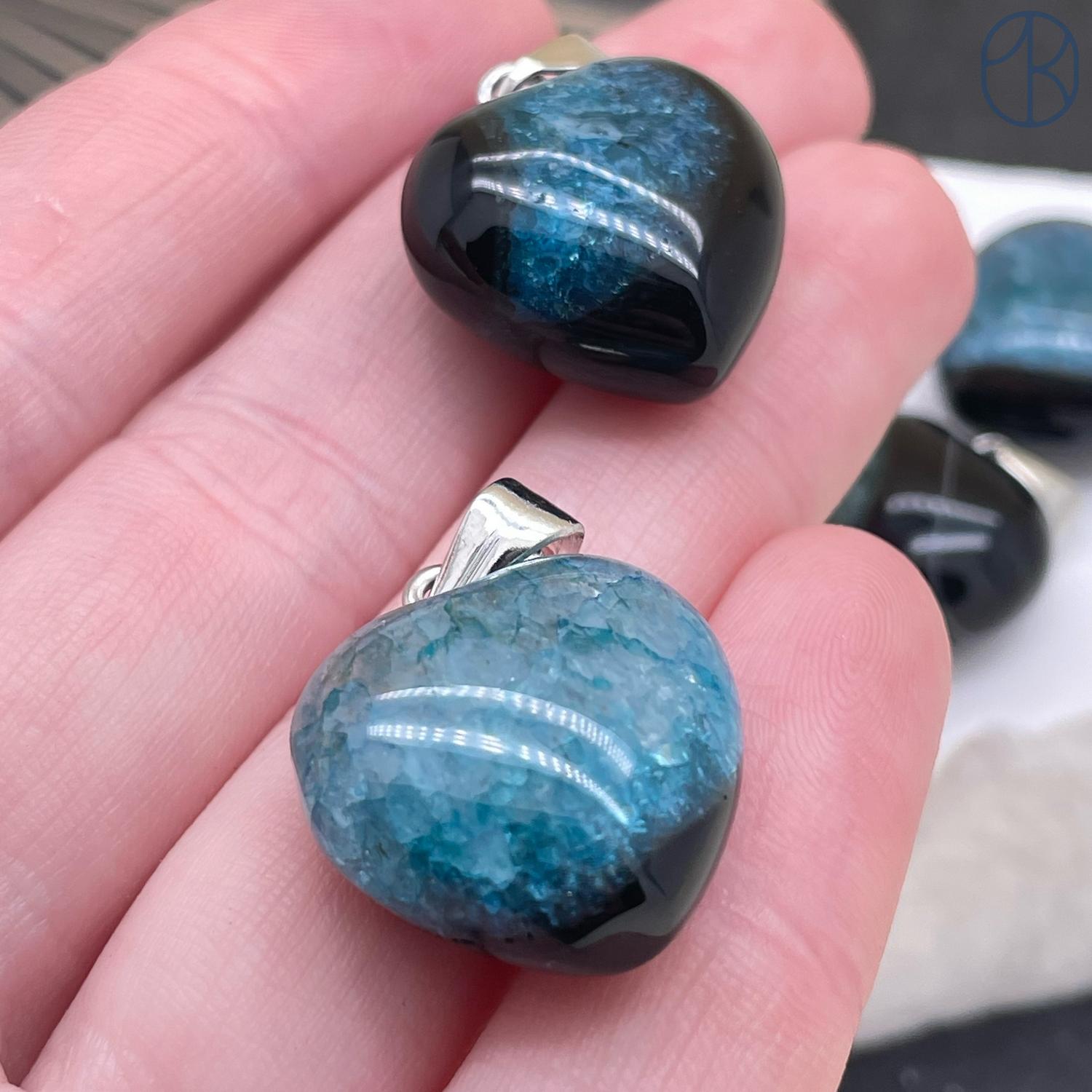 Подвеска сердце Агат синий тонированный, цвет серебро, 20х20 мм