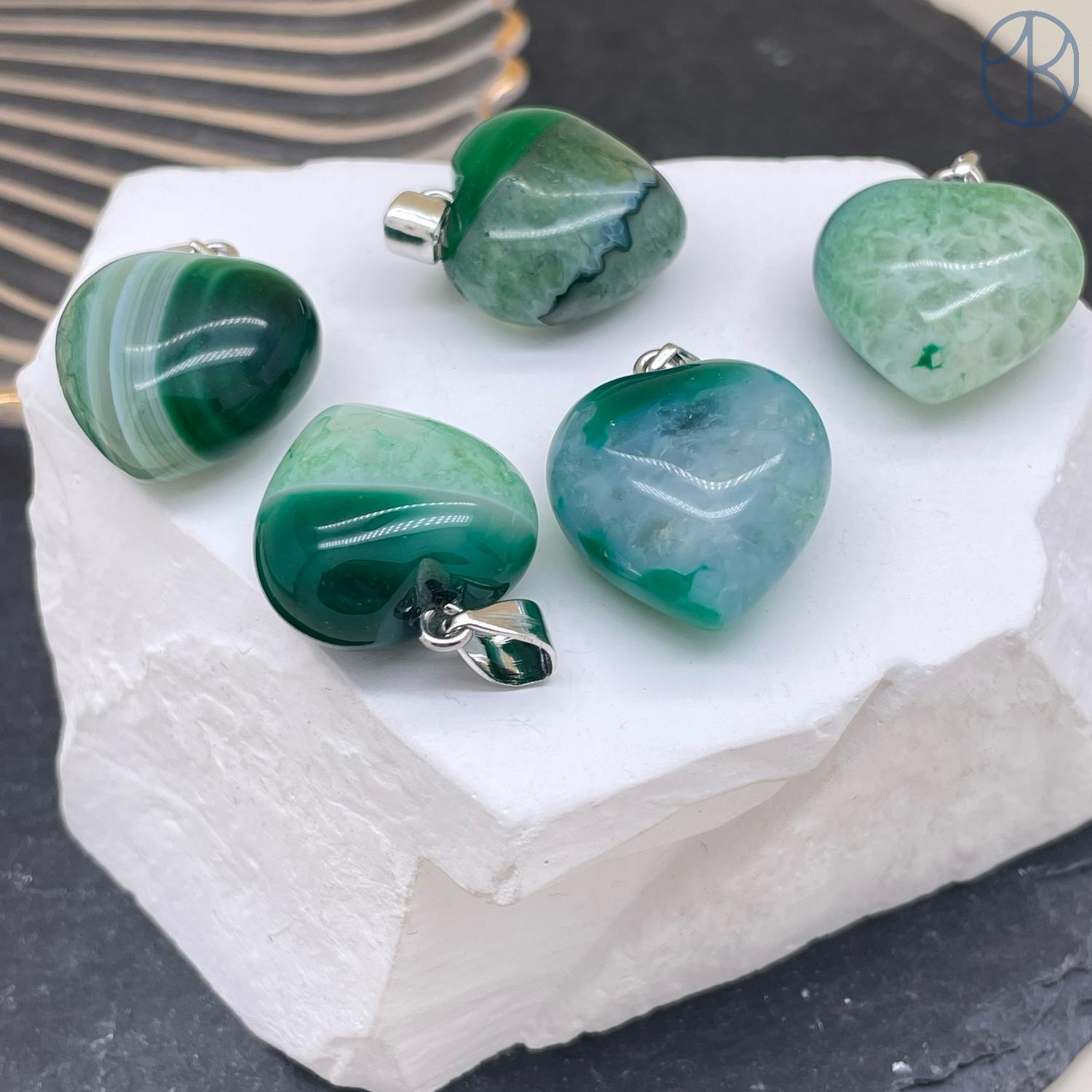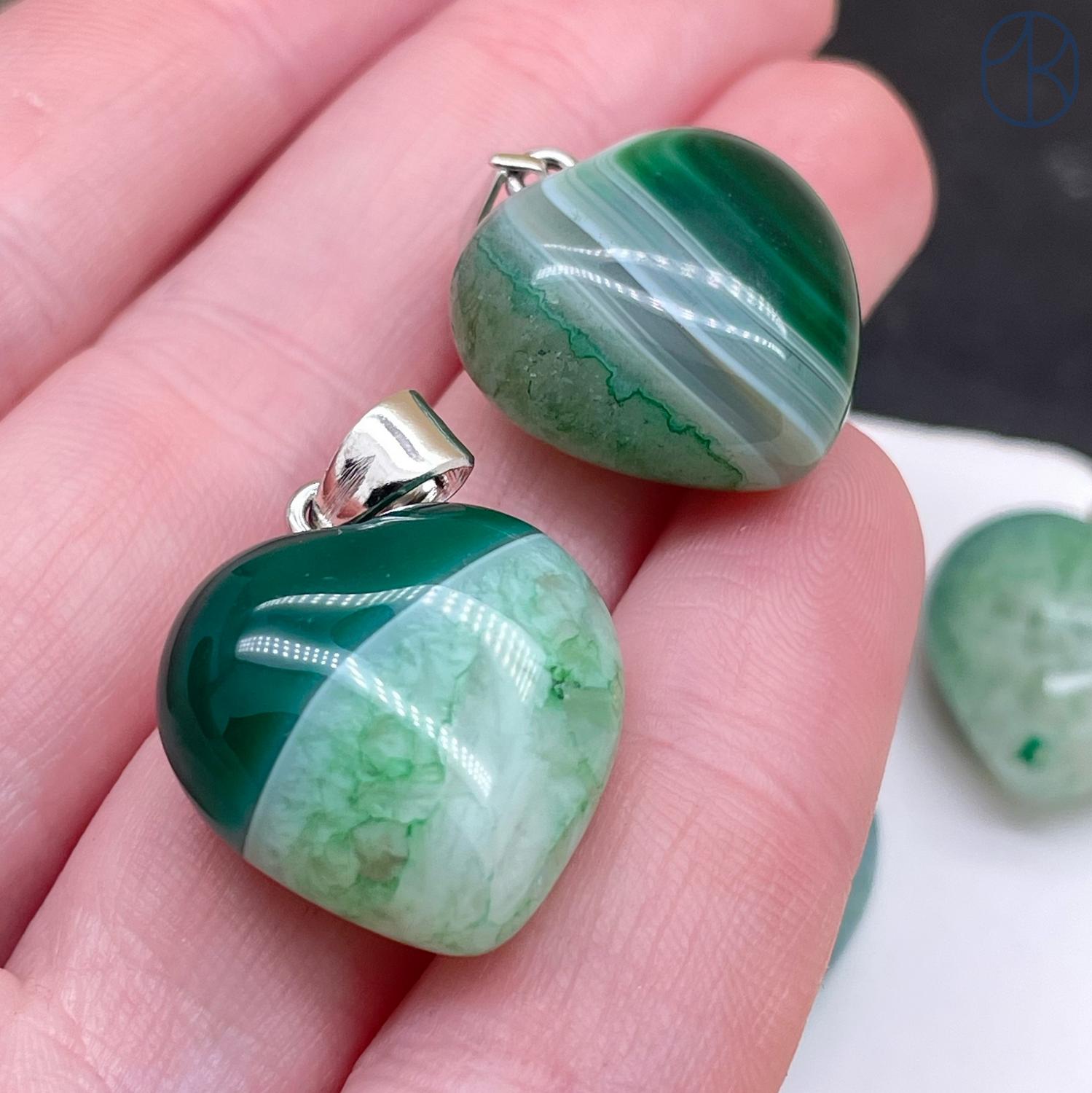 Подвеска сердце Агат зеленый тонированный, цвет серебро, 20х20 мм
