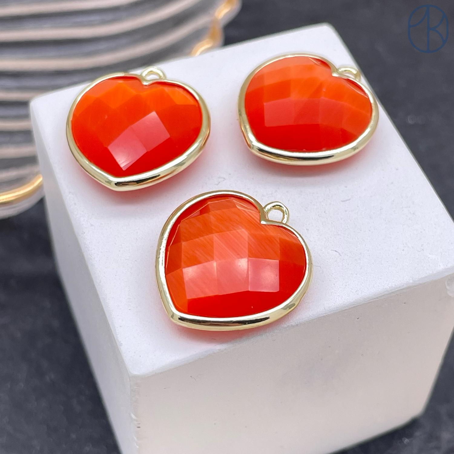 Подвеска сердце оранжевое кошачий глаз, Цвет золото, 16х16