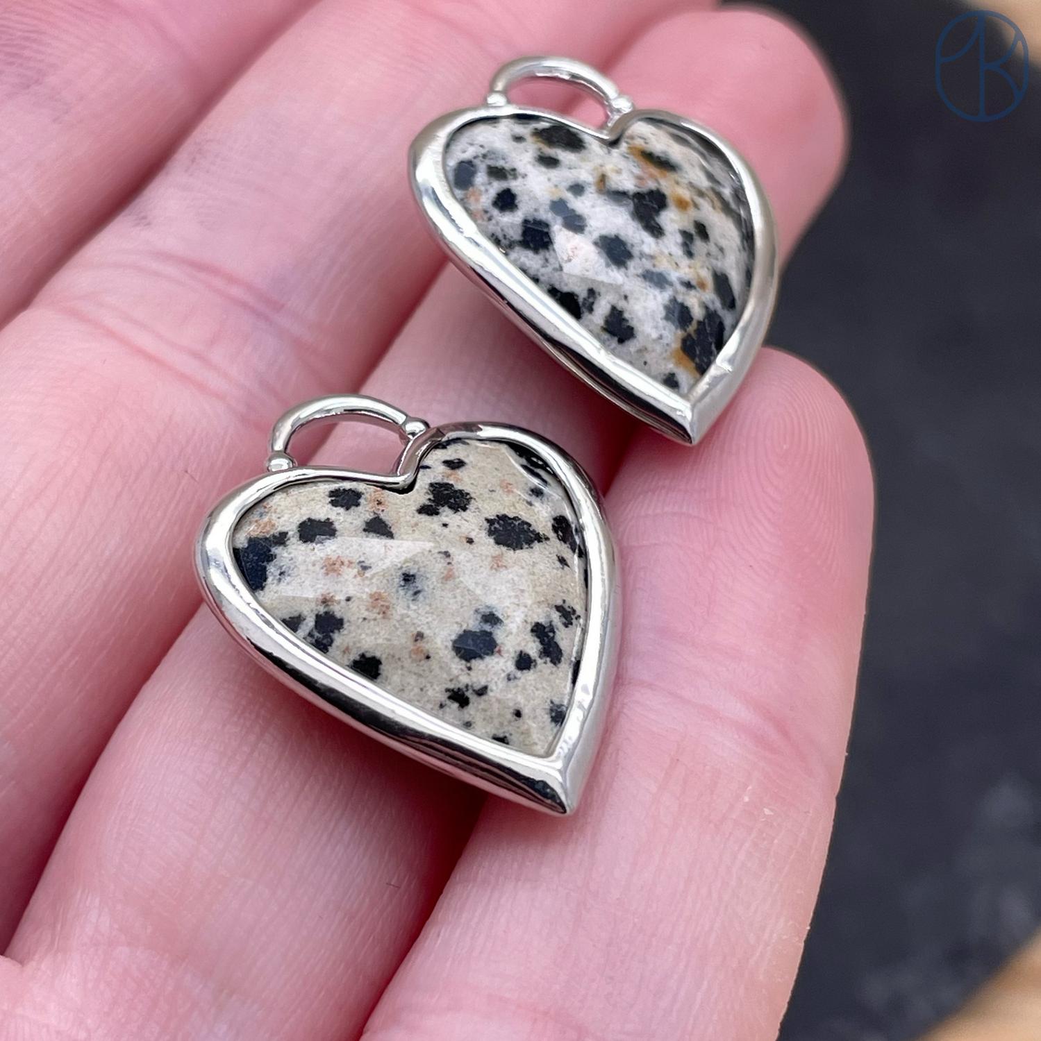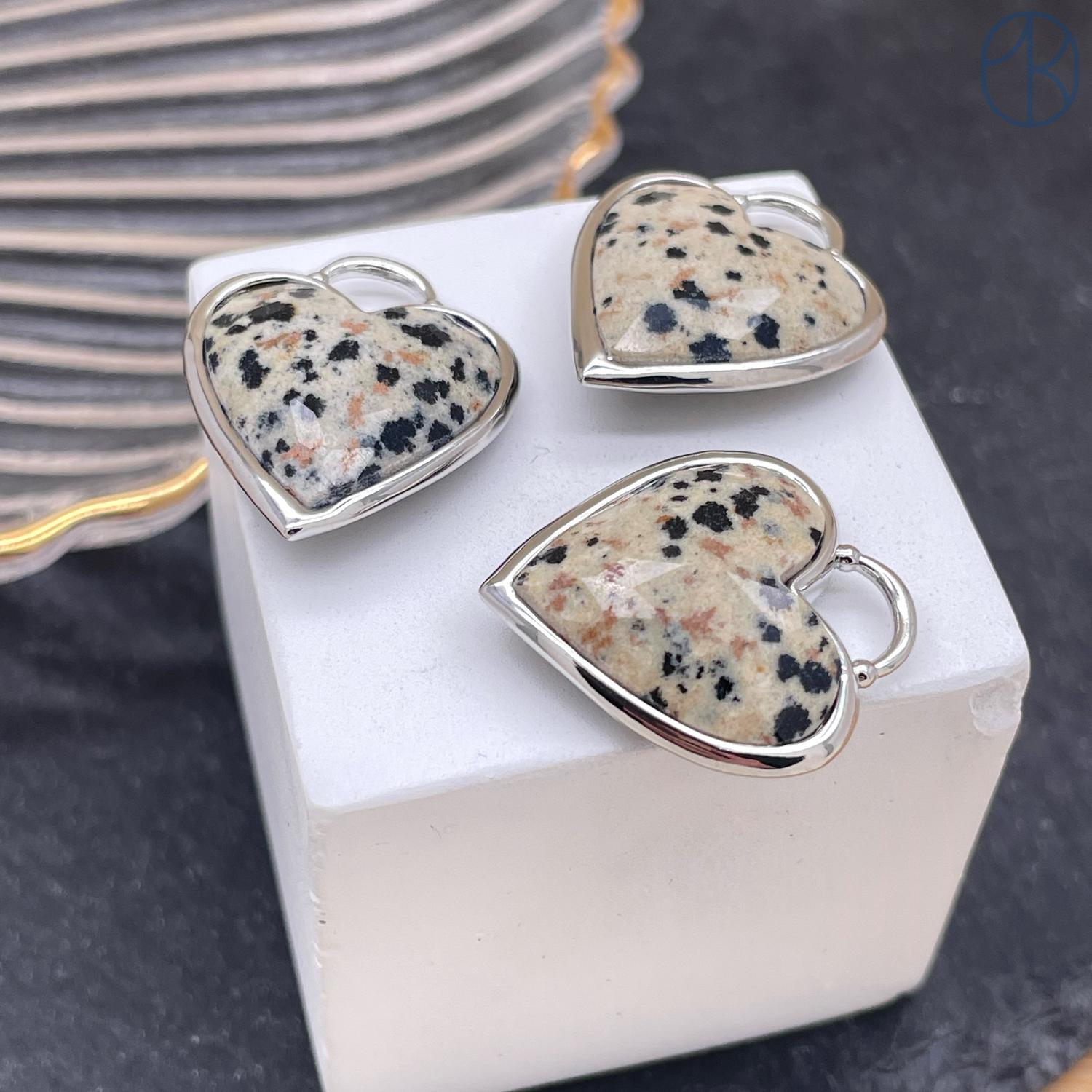 Подвеска сердце Яшма Далматиновая, Цвет серебро 20Х20