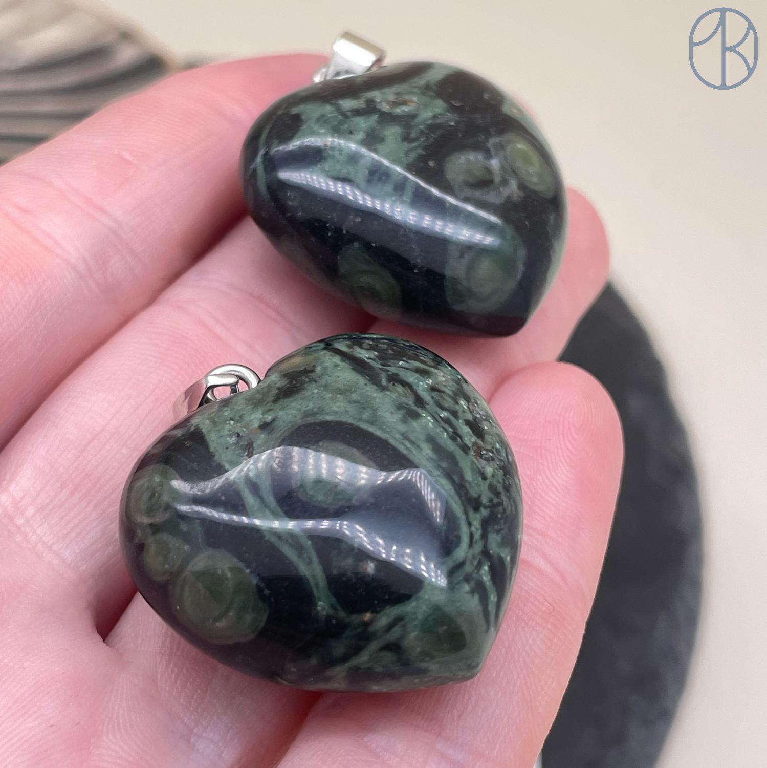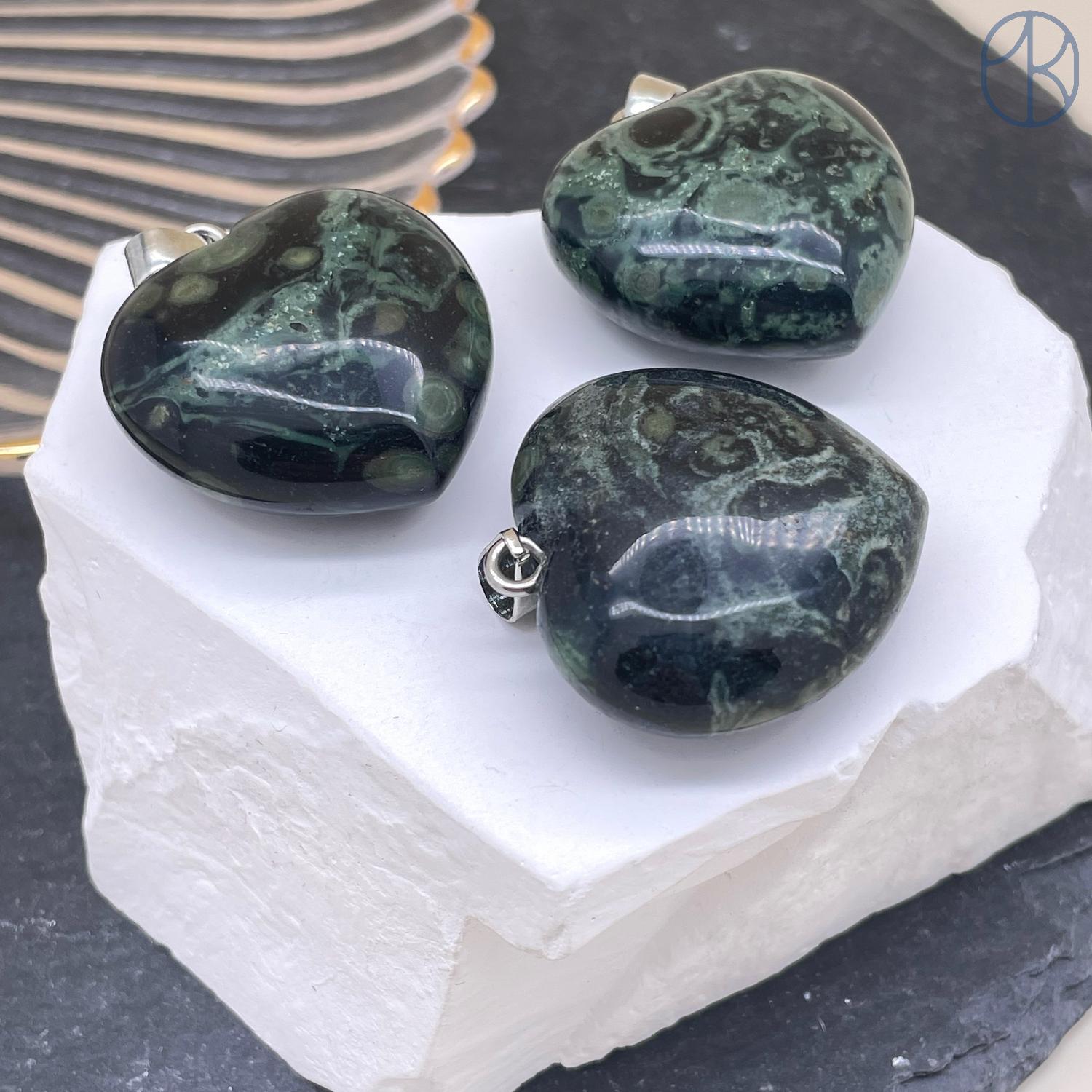 Подвеска сердце Яшма Камбаба (риолитовый камень), цвет серебро, 30х30 мм
