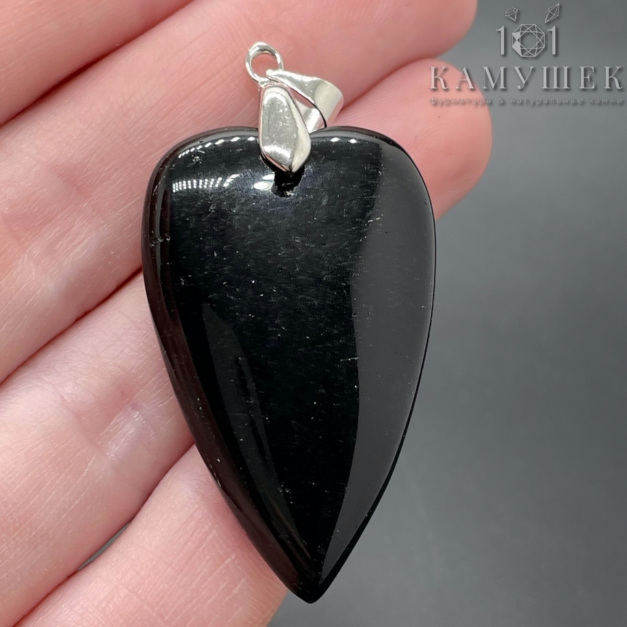 Подвеска сердце черный агат, цвет серебро 25х40 мм