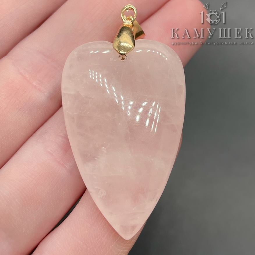 Подвеска сердце розовый кварц, цвет золото 25х40 мм