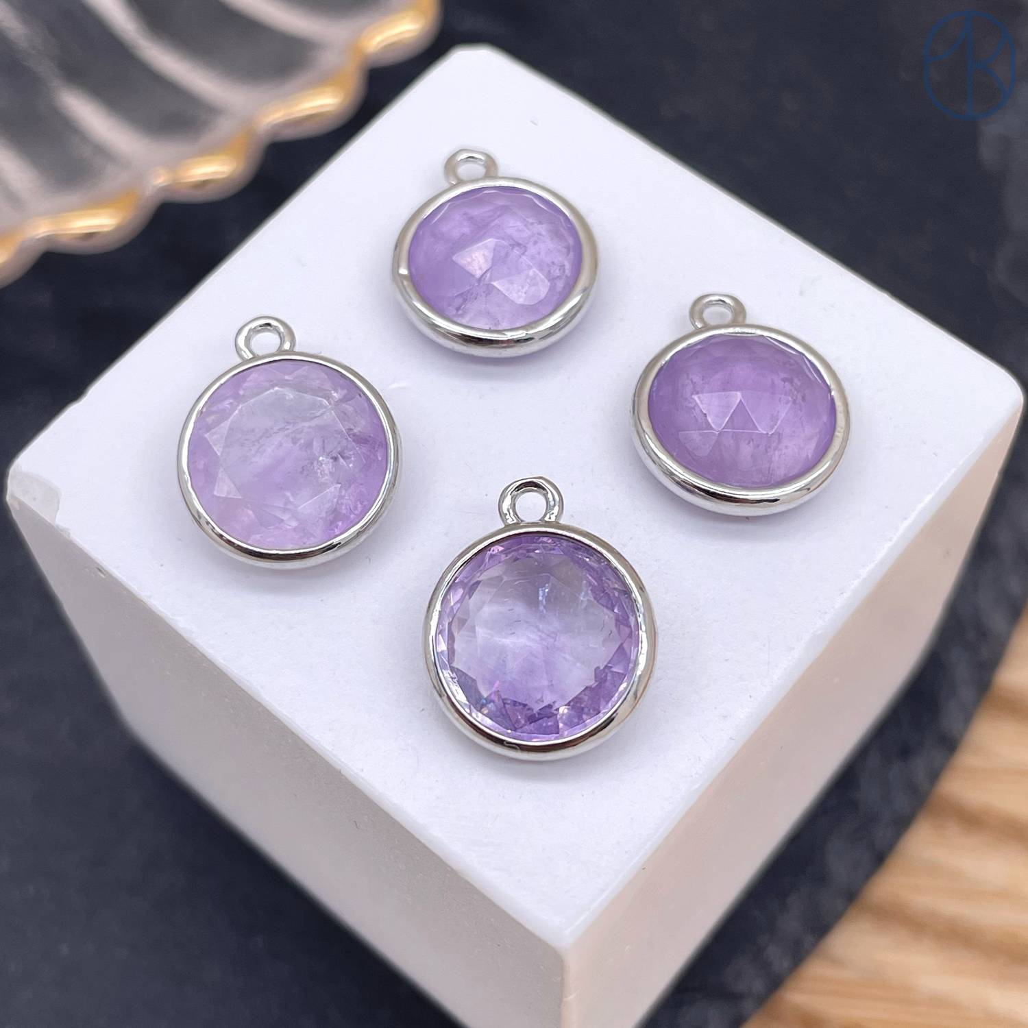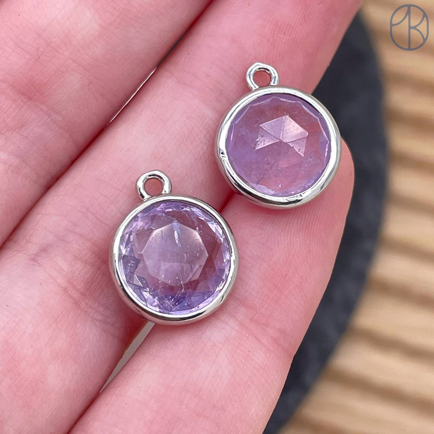 10, 5мм, цвет серебро, Подвеска круг мини Лавандовый Аметист огранка
