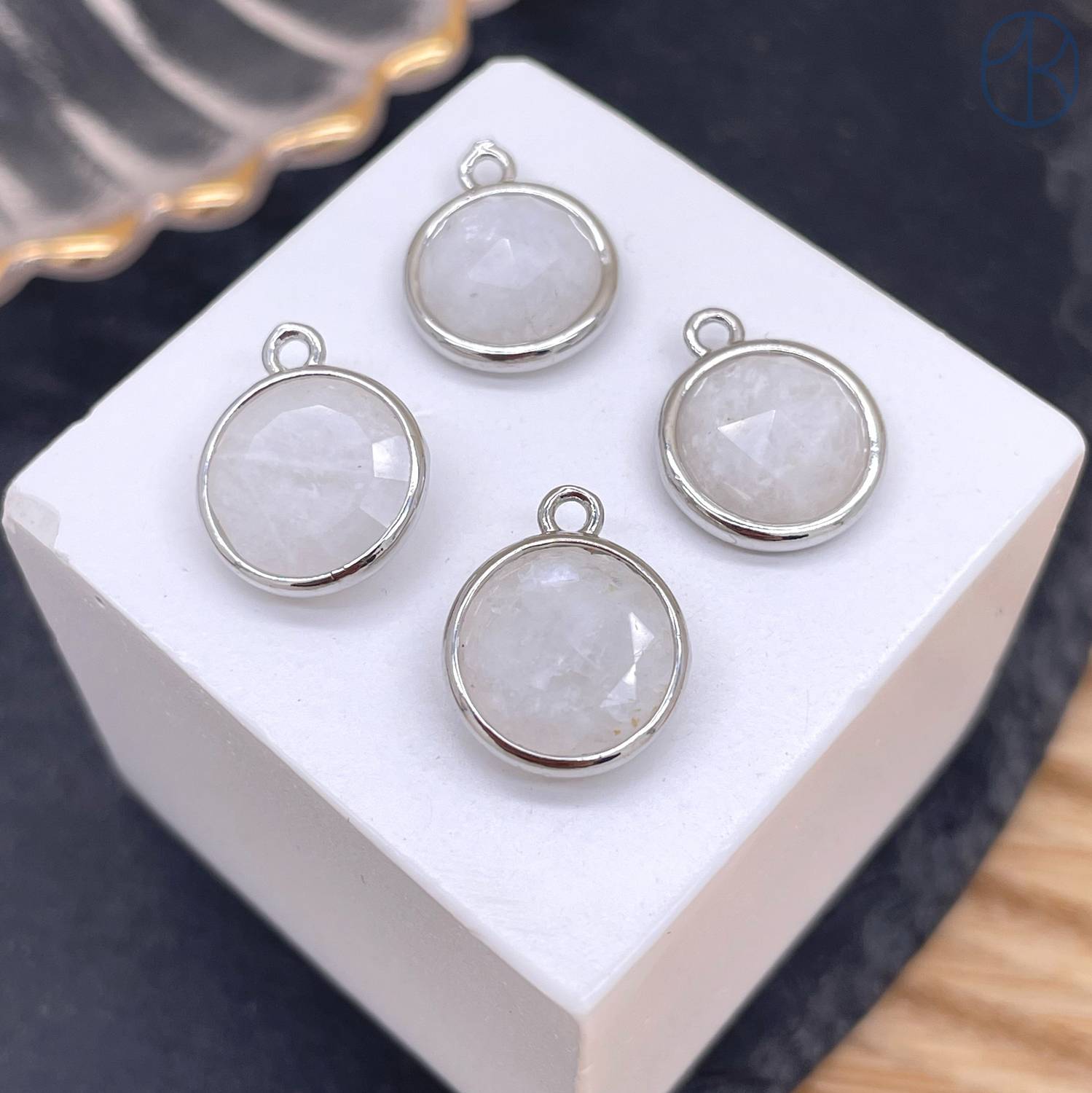 10, 5мм, цвет серебро, Подвеска круг мини Лунный камень огранка