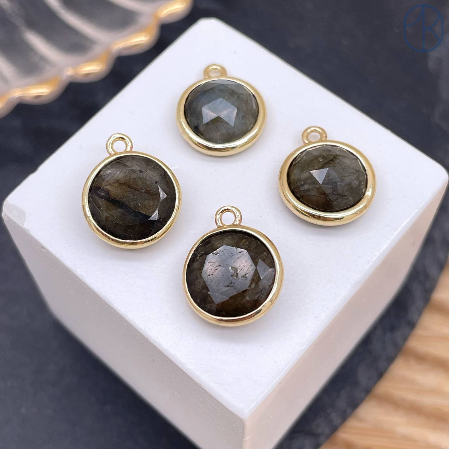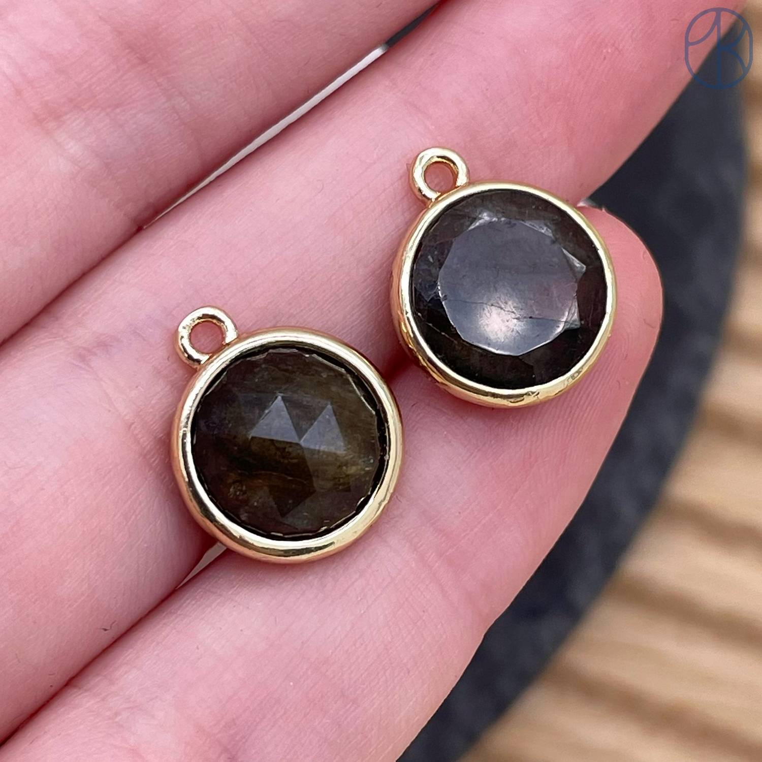 Подвеска круг лабрадор, цвет золото 10 мм