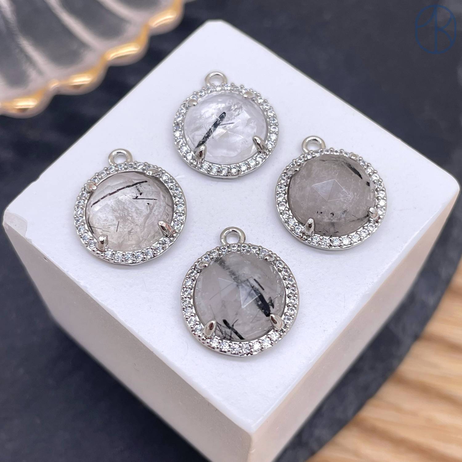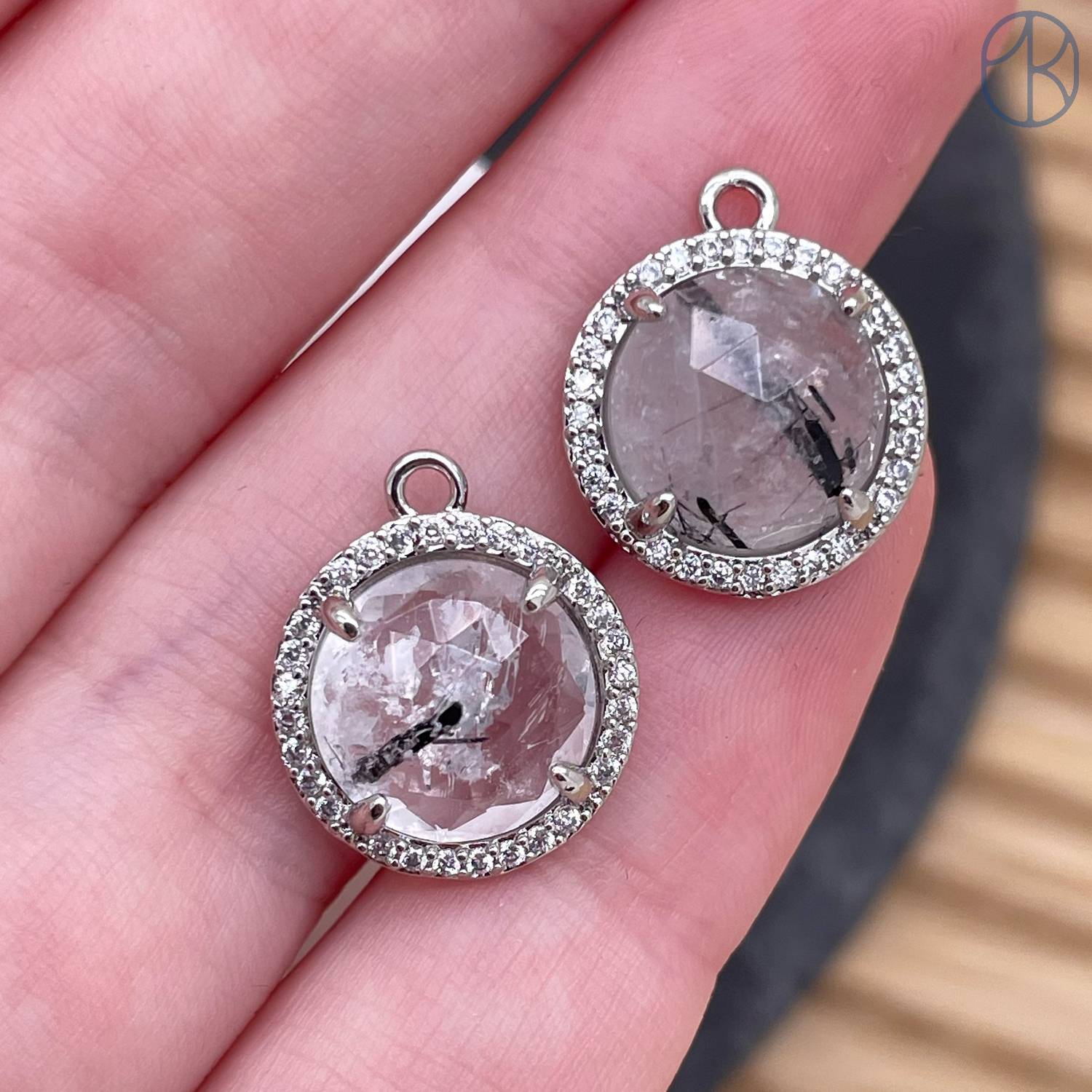 Подвеска круг огранка цирконы кварц турмалиновый, цвет серебро 13 мм