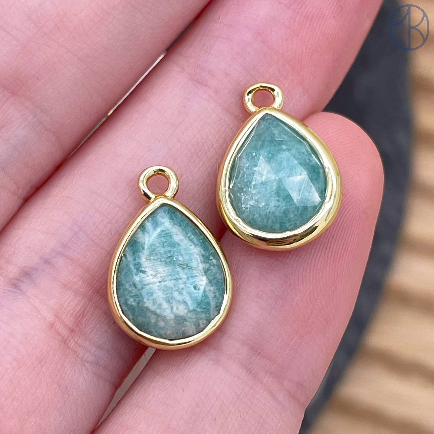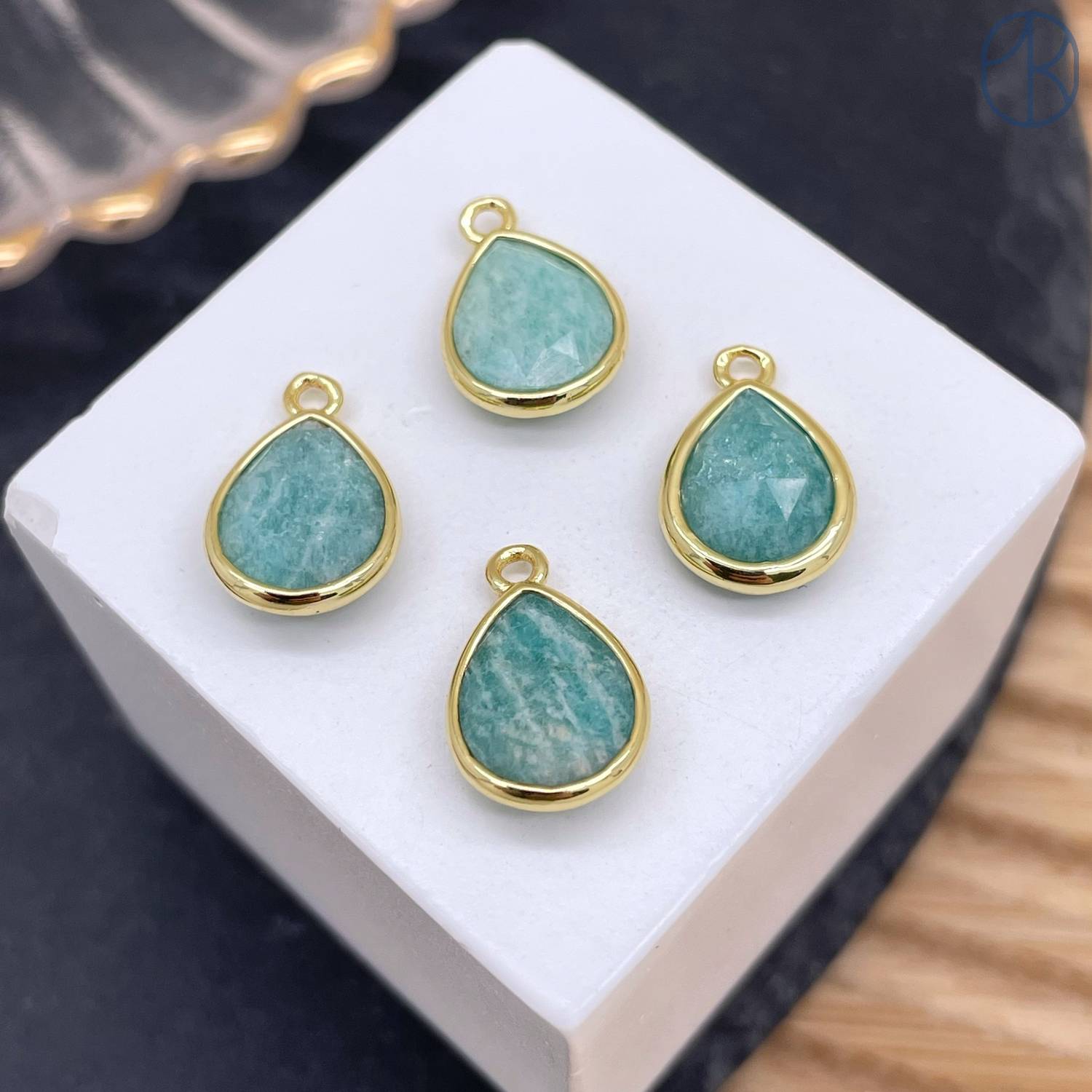 Подвеска капля амазонит, цвет золото 11 мм