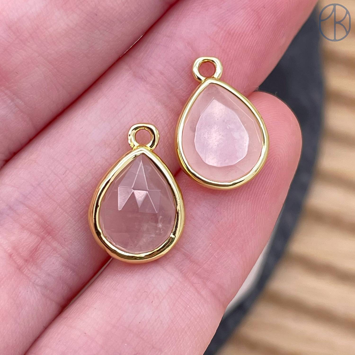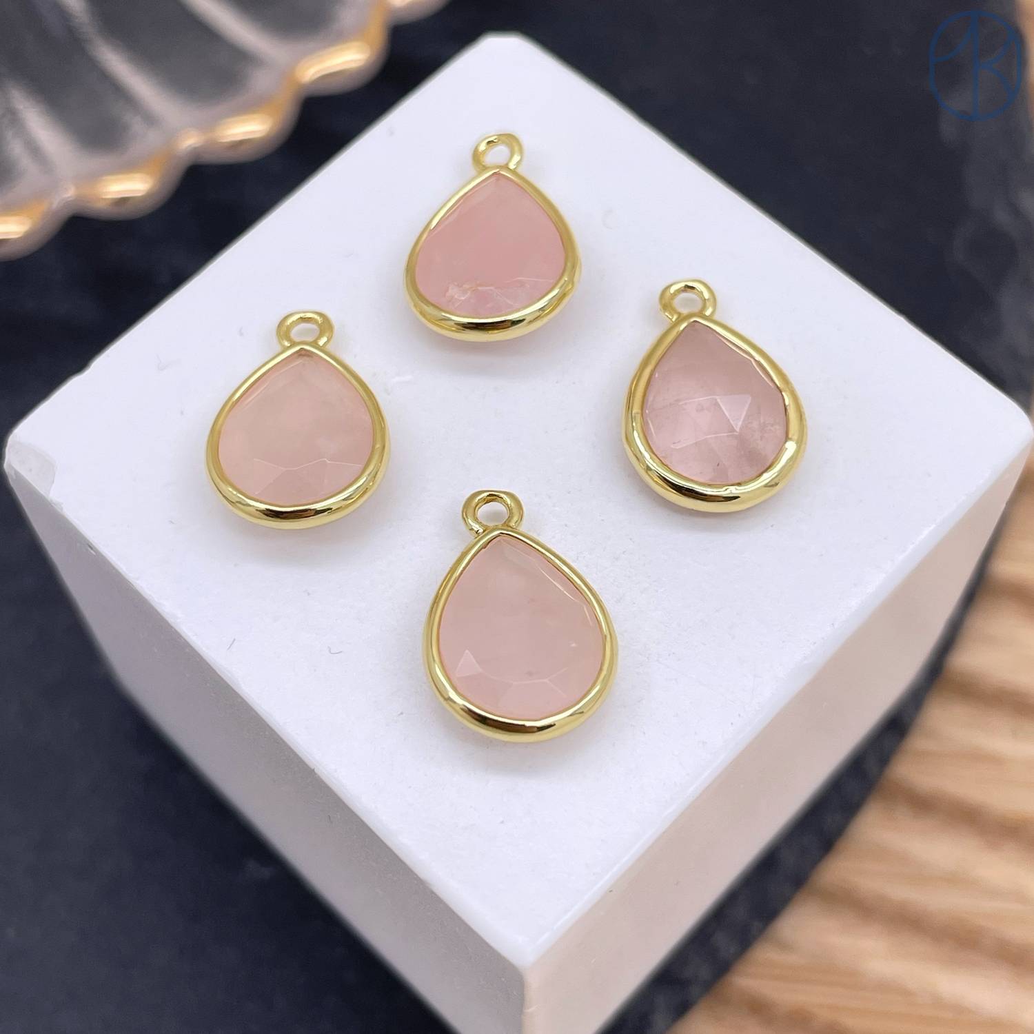 Подвеска капля розовый кварц, цвет золото 11 мм