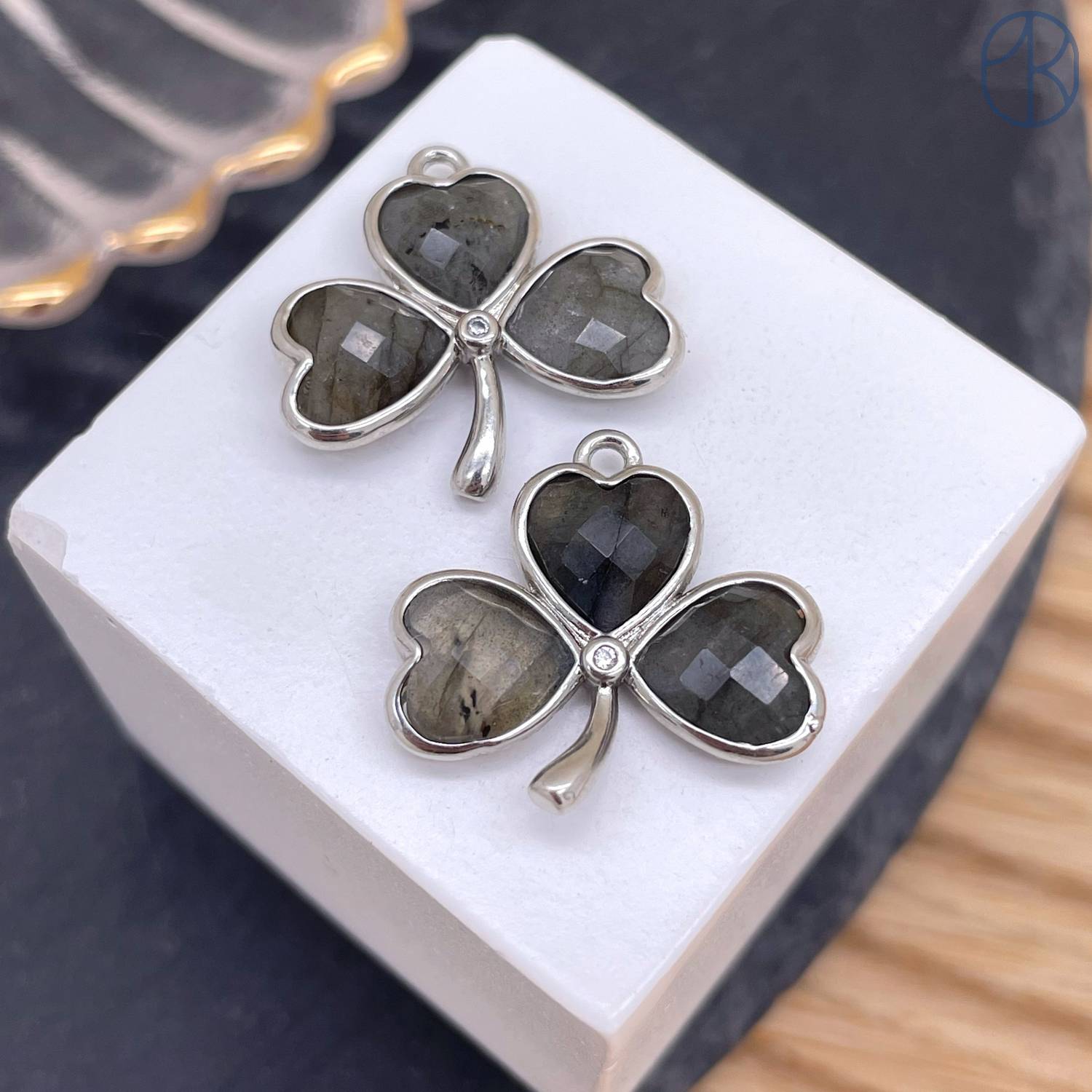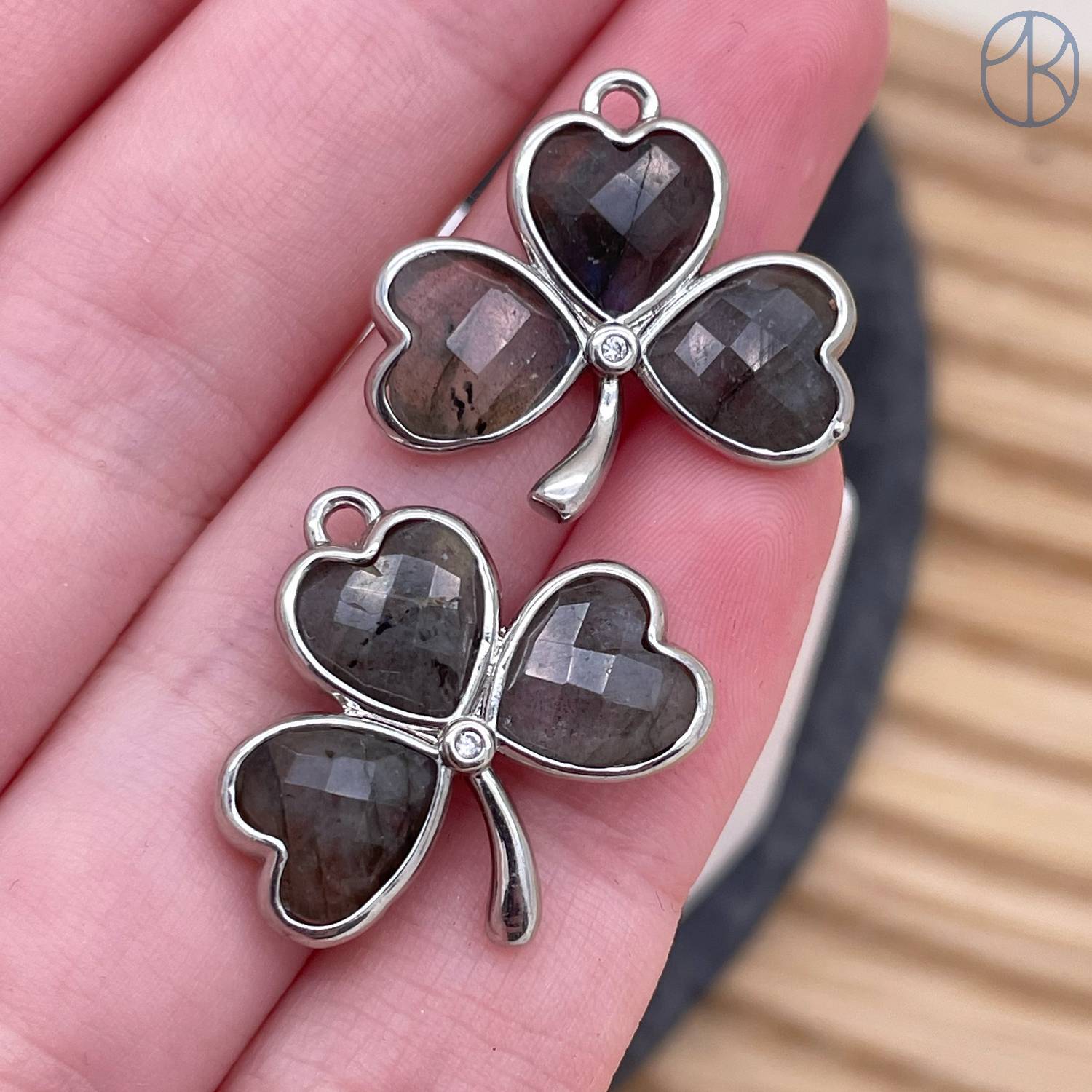 Подвеска клевер огранка лабрадор, цвет серебро 18 мм