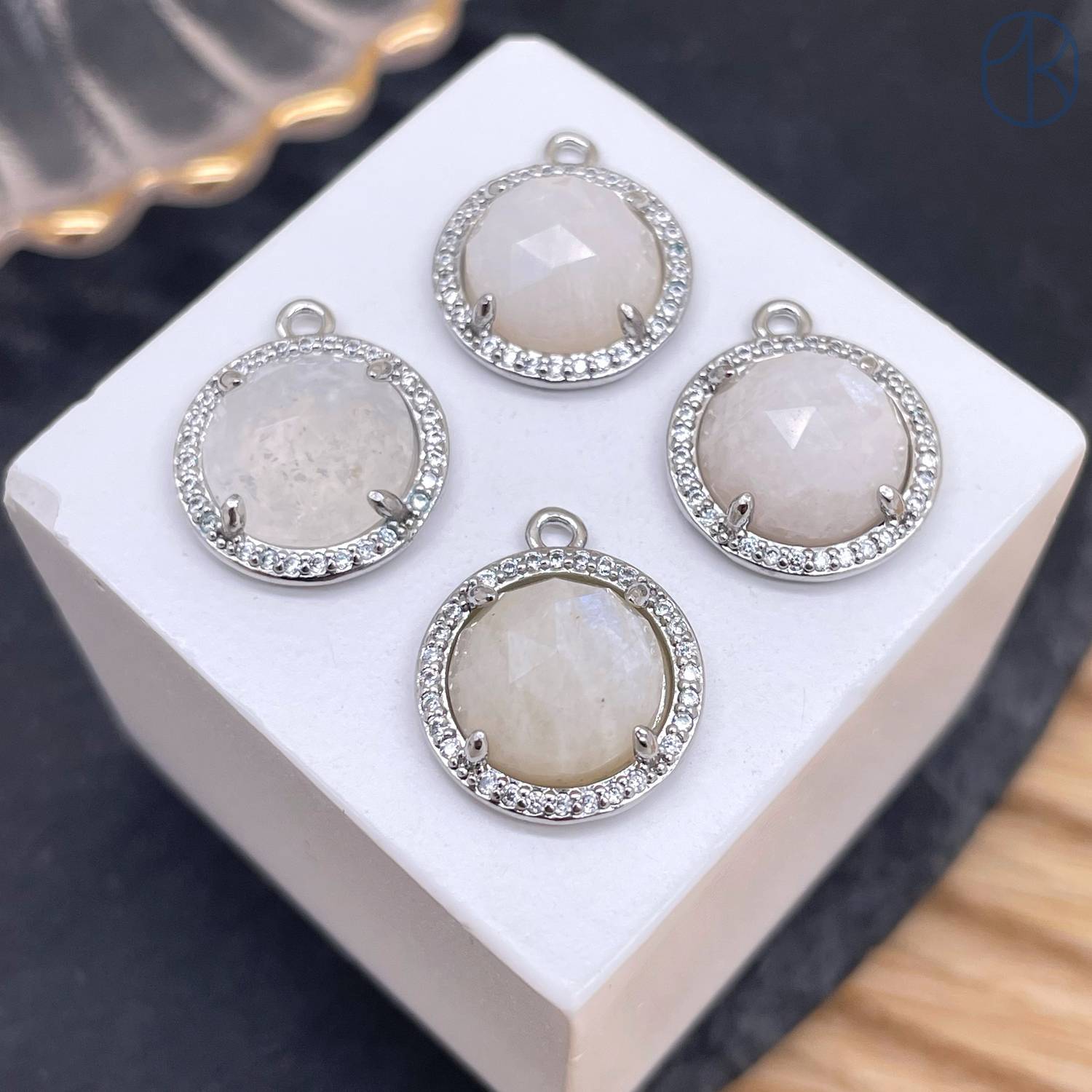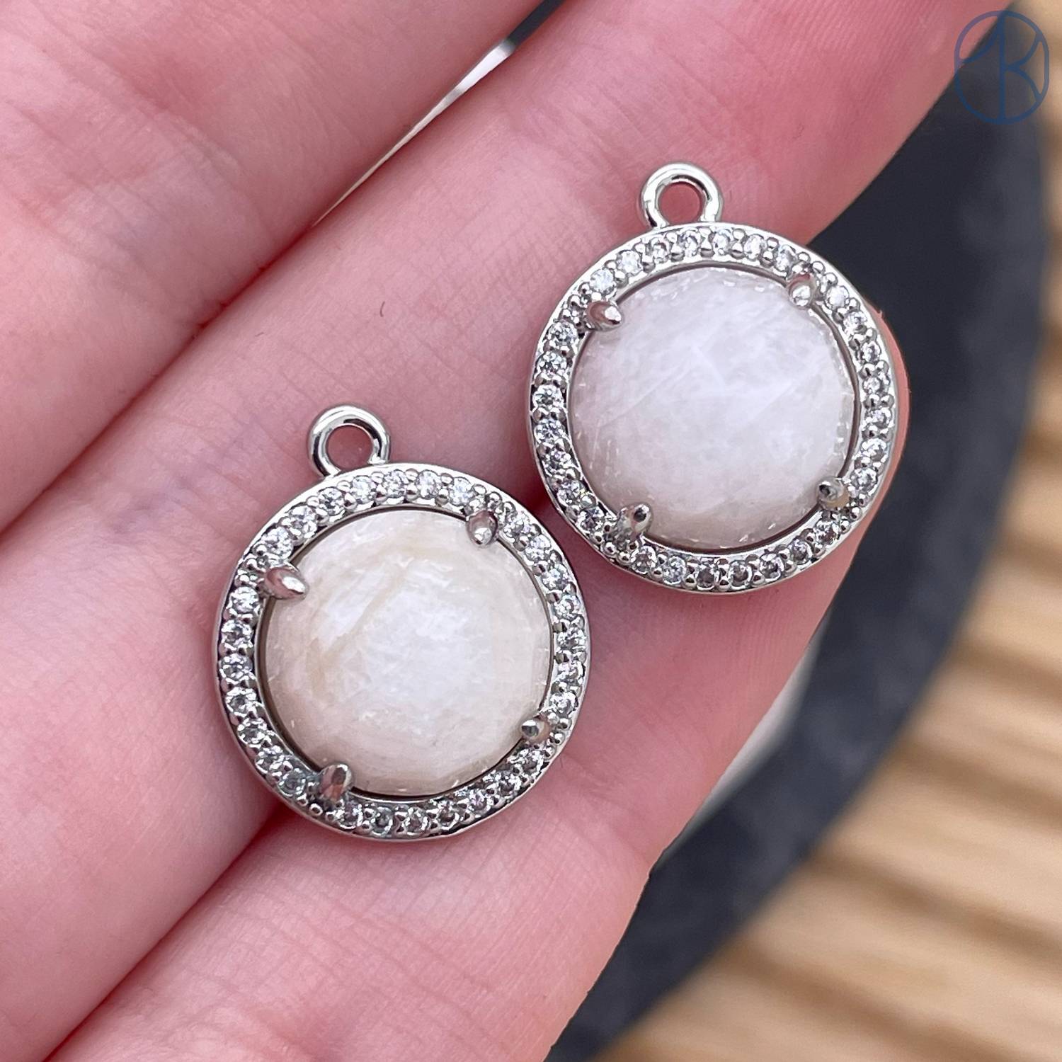 Подвеска круг огранка цирконы лунный камень, цвет серебро 13 мм