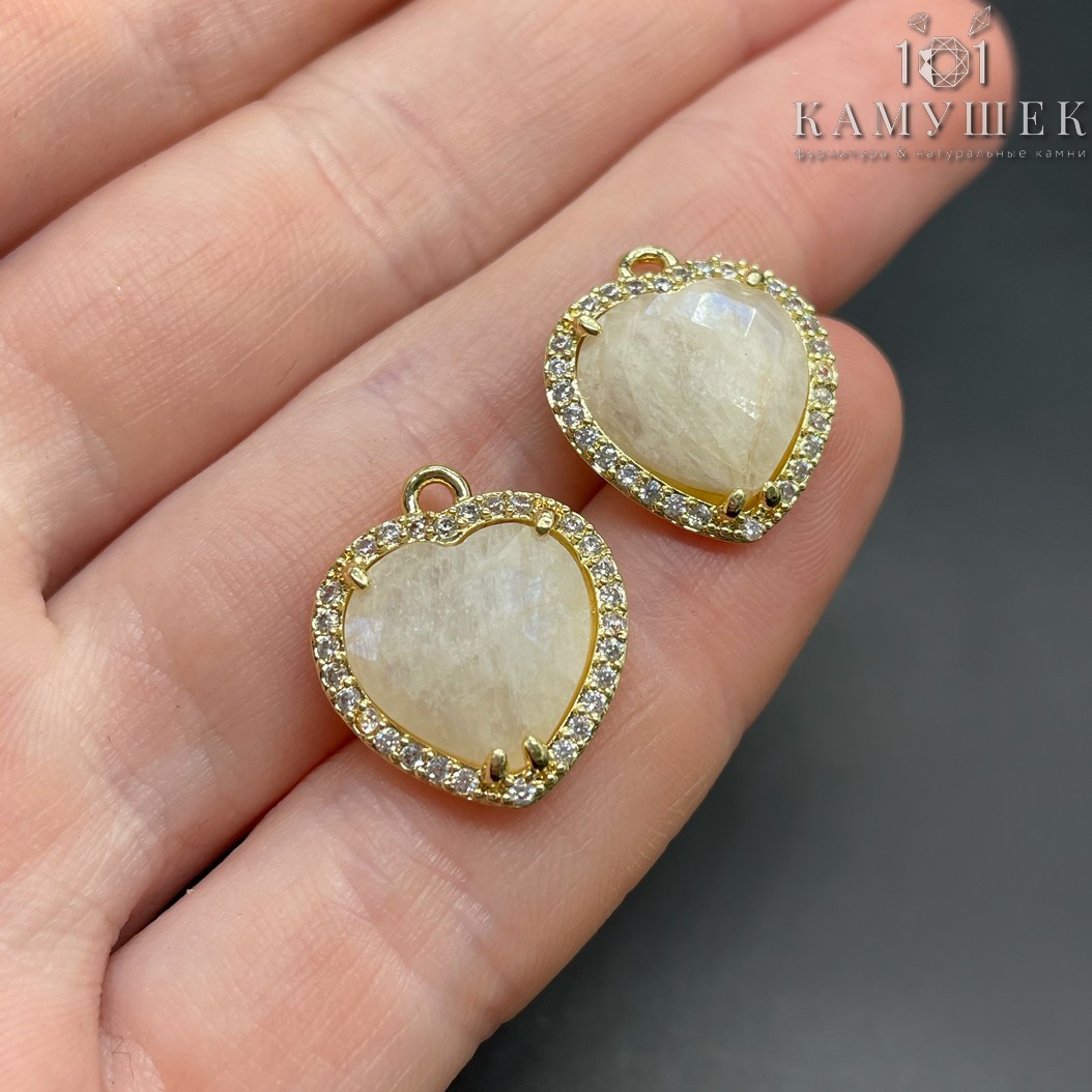 Подвеска сердце огранка цирконы лунный камень, цвет золото 16х18 мм