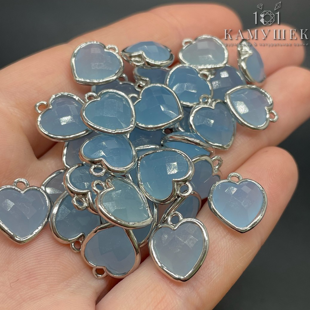 Подвеска сердце кварц тонированный голубой огранка, цвет серебро 12х13 мм