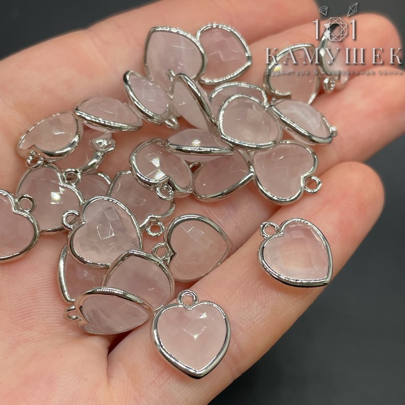 Подвеска сердце розовый кварц огранка, цвет серебро 12х13 мм