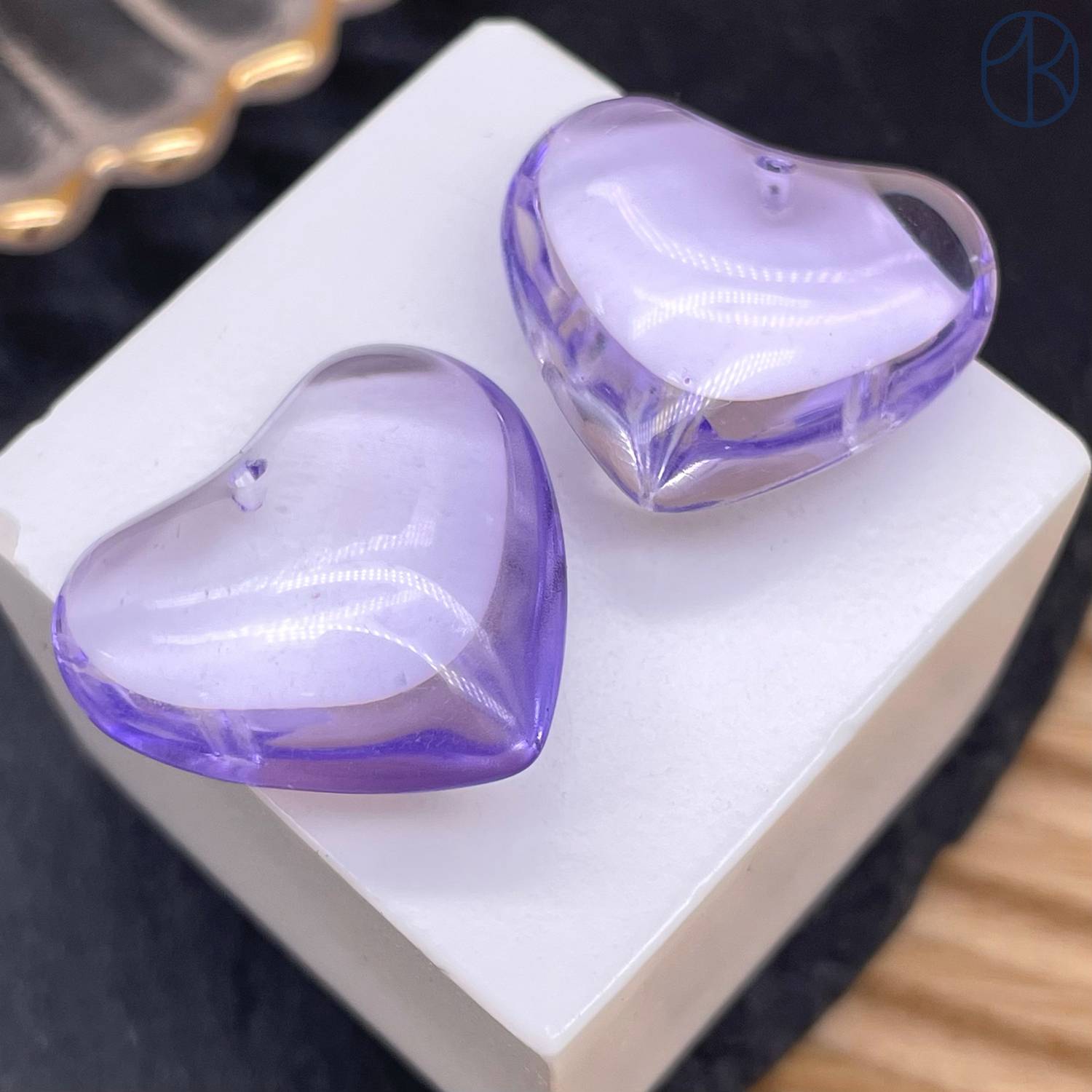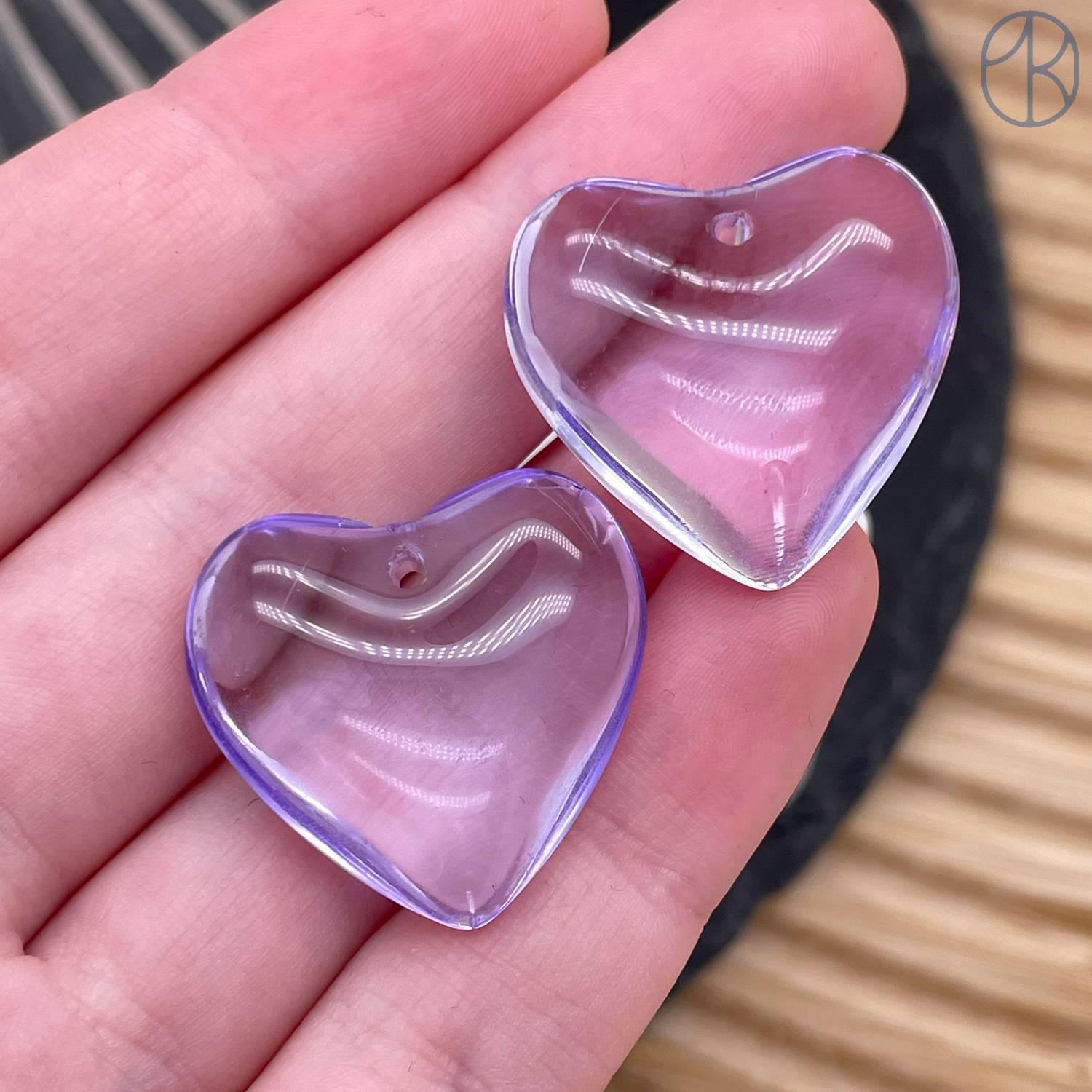 Подвеска сердце стекло сиреневое уп. 2 шт. 24 мм