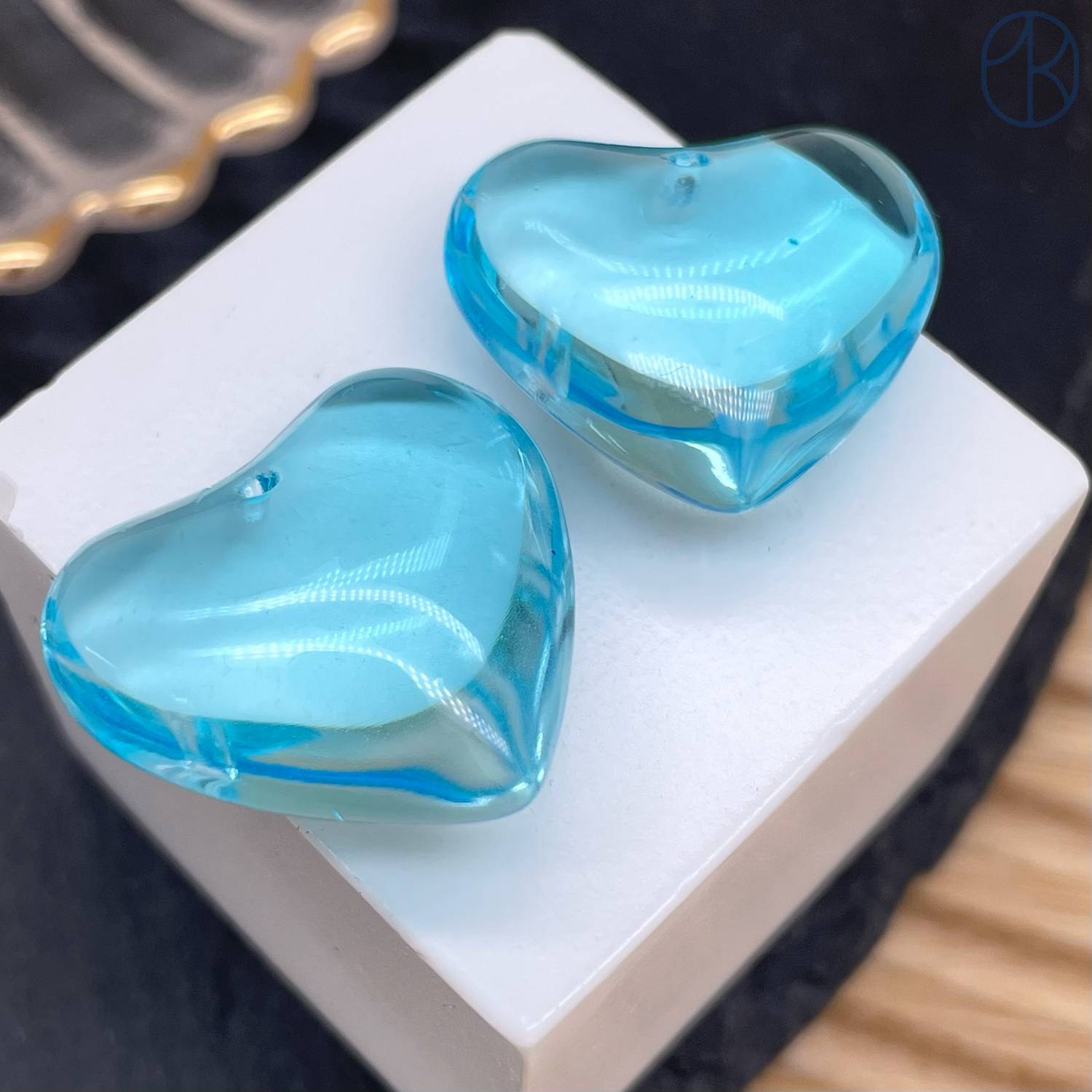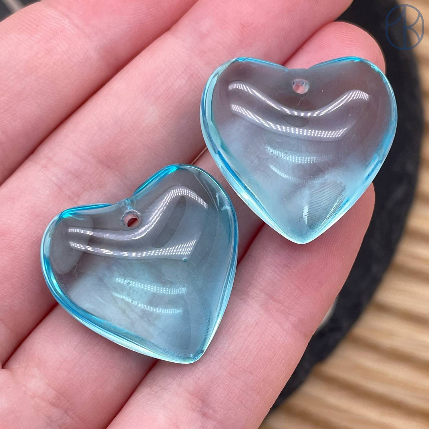 Подвеска сердце стекло голубое уп. 2 шт. 24 мм