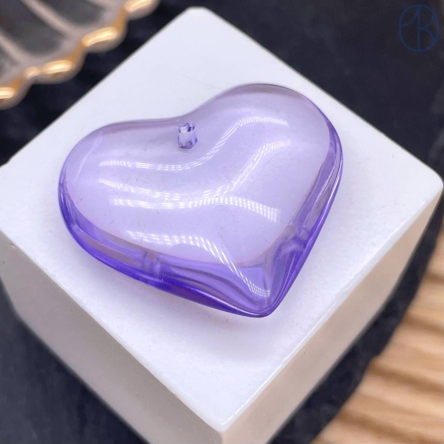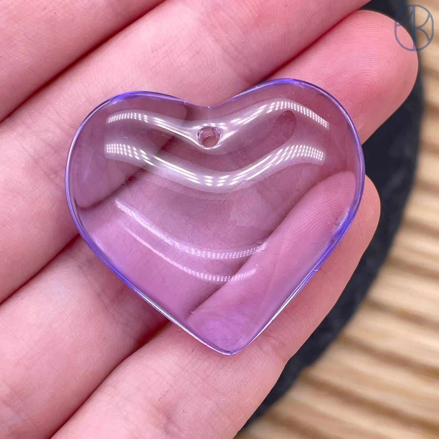 Подвеска сердце стекло сиреневое уп. 2 шт. 29 мм