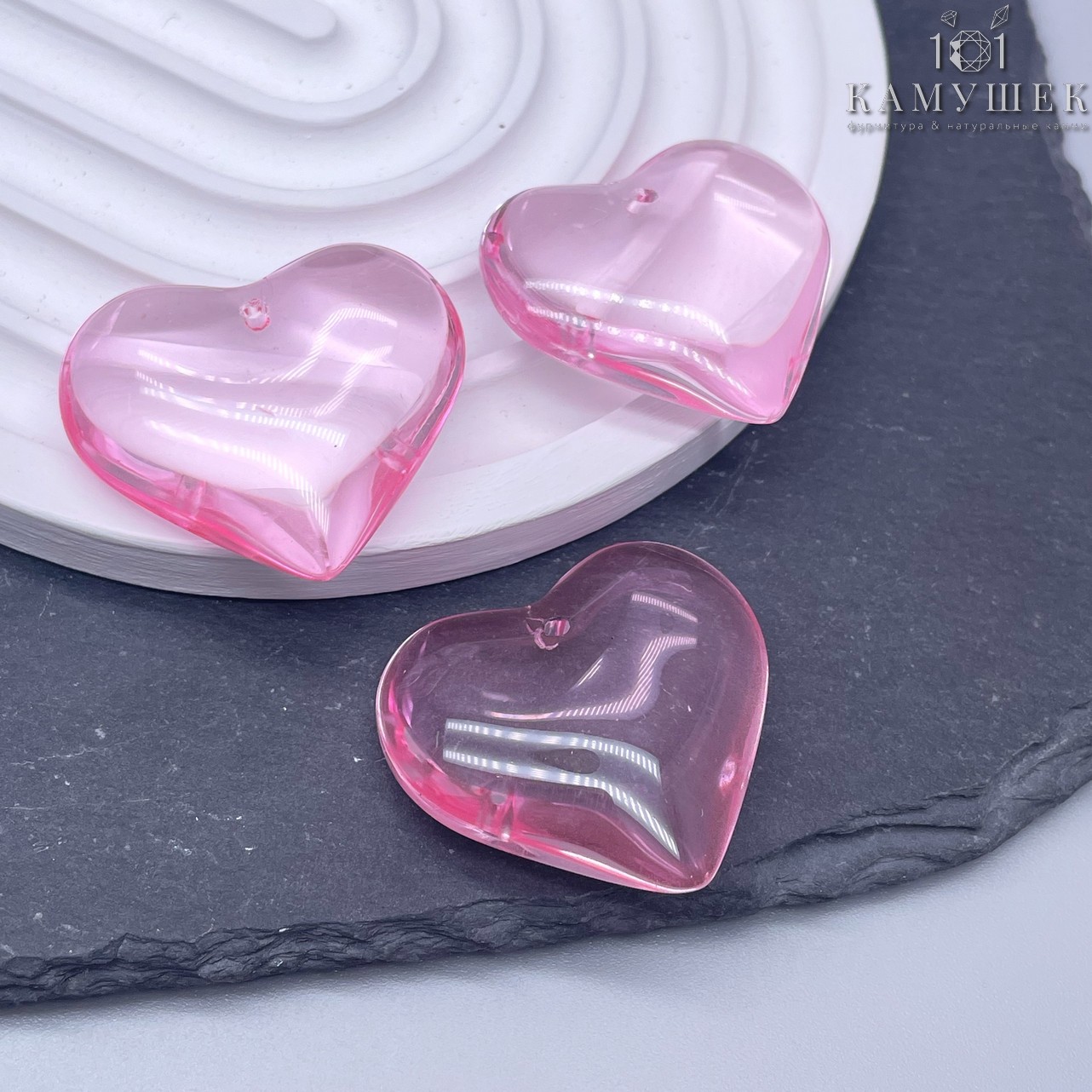 Подвеска сердце стекло розовое уп. 2 шт. 29 мм