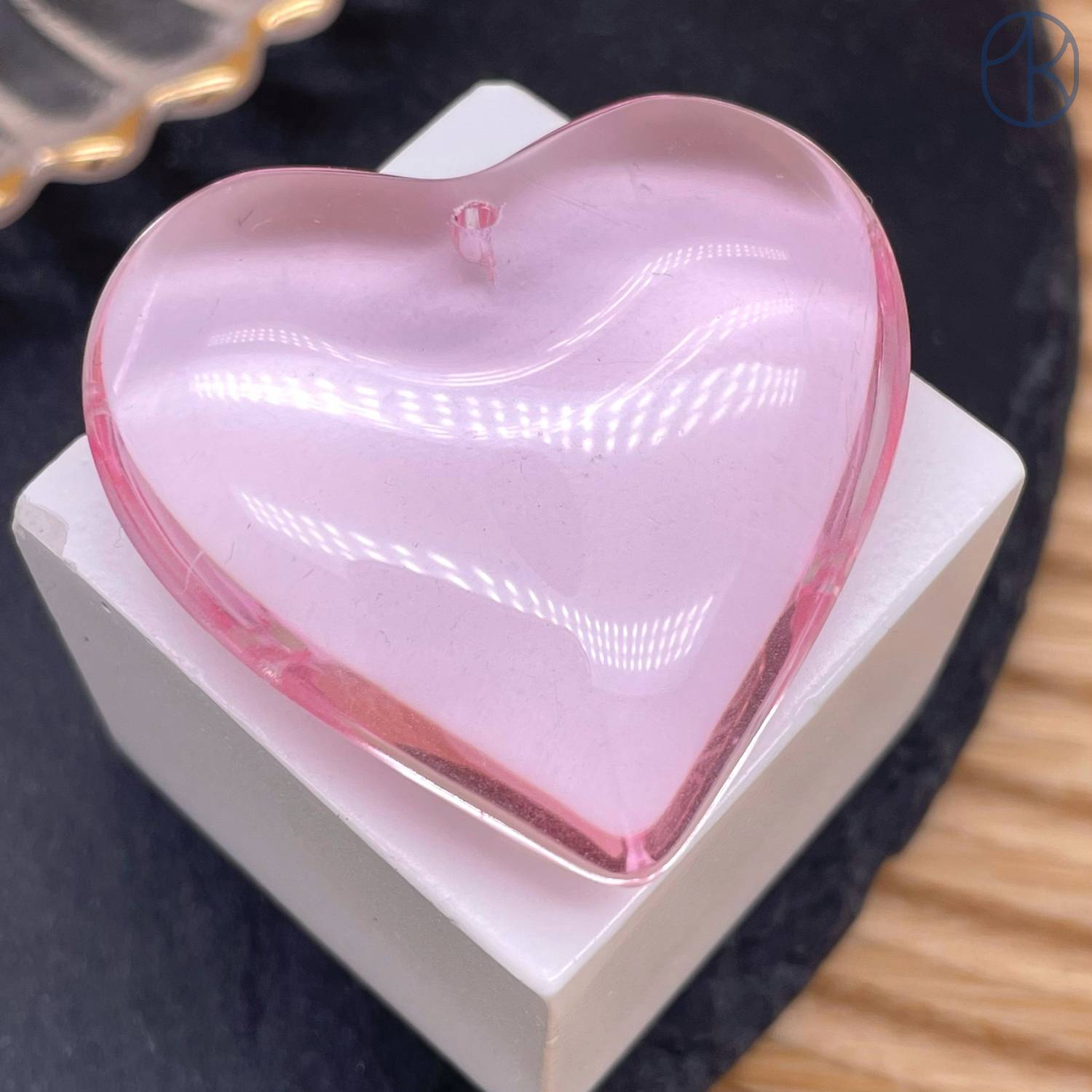 Подвеска сердце стекло розовое 42 мм