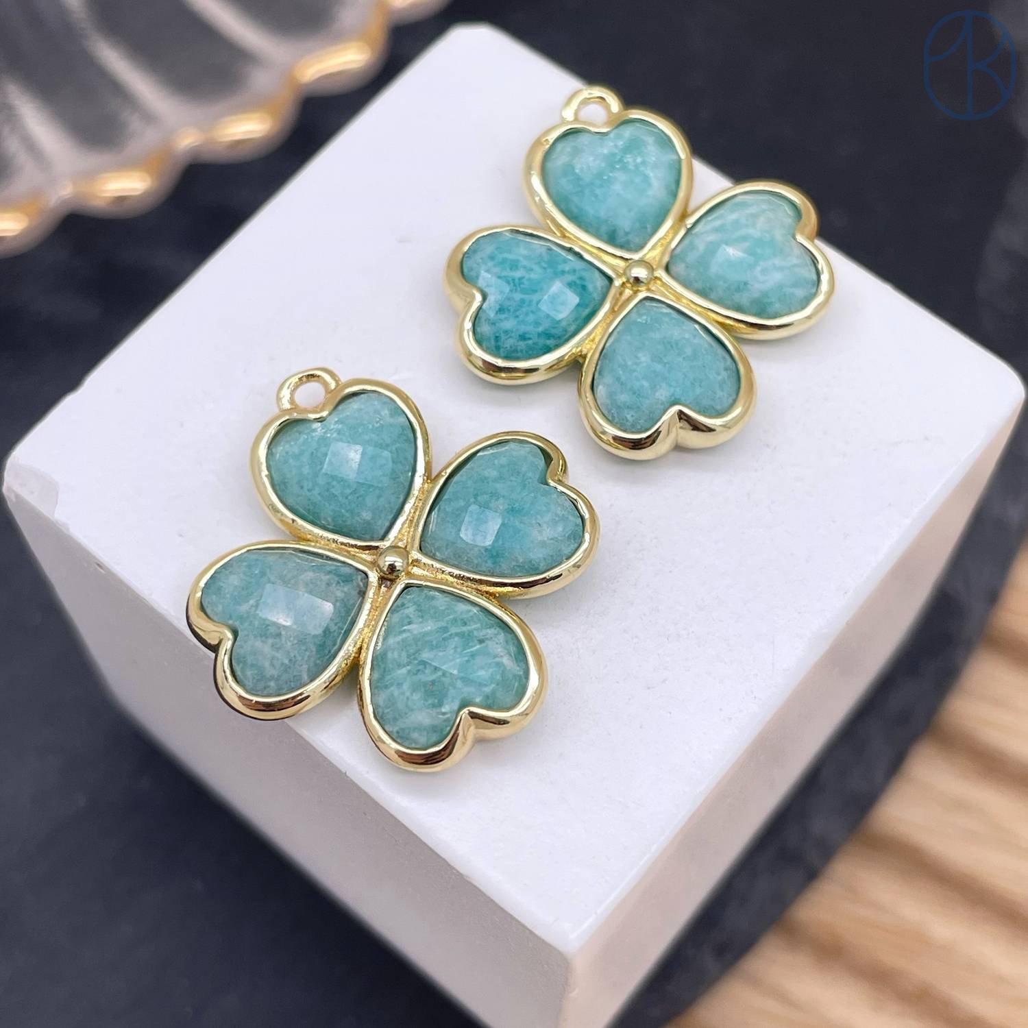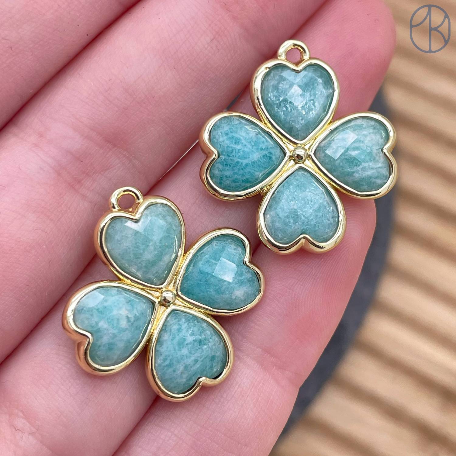 Подвеска клевер огранка амазонит, цвет золото 21 мм
