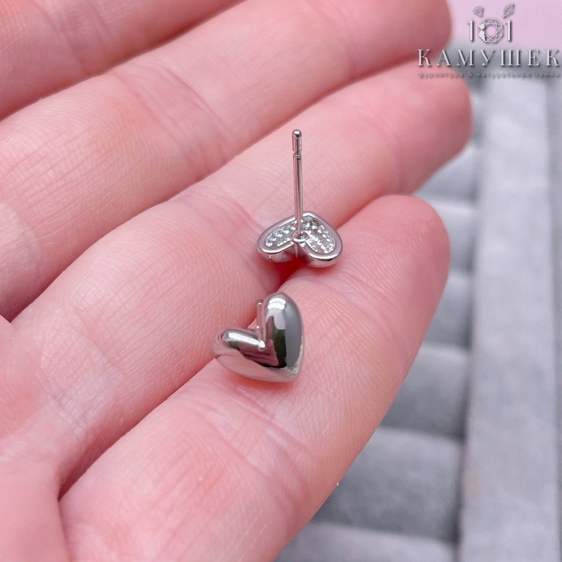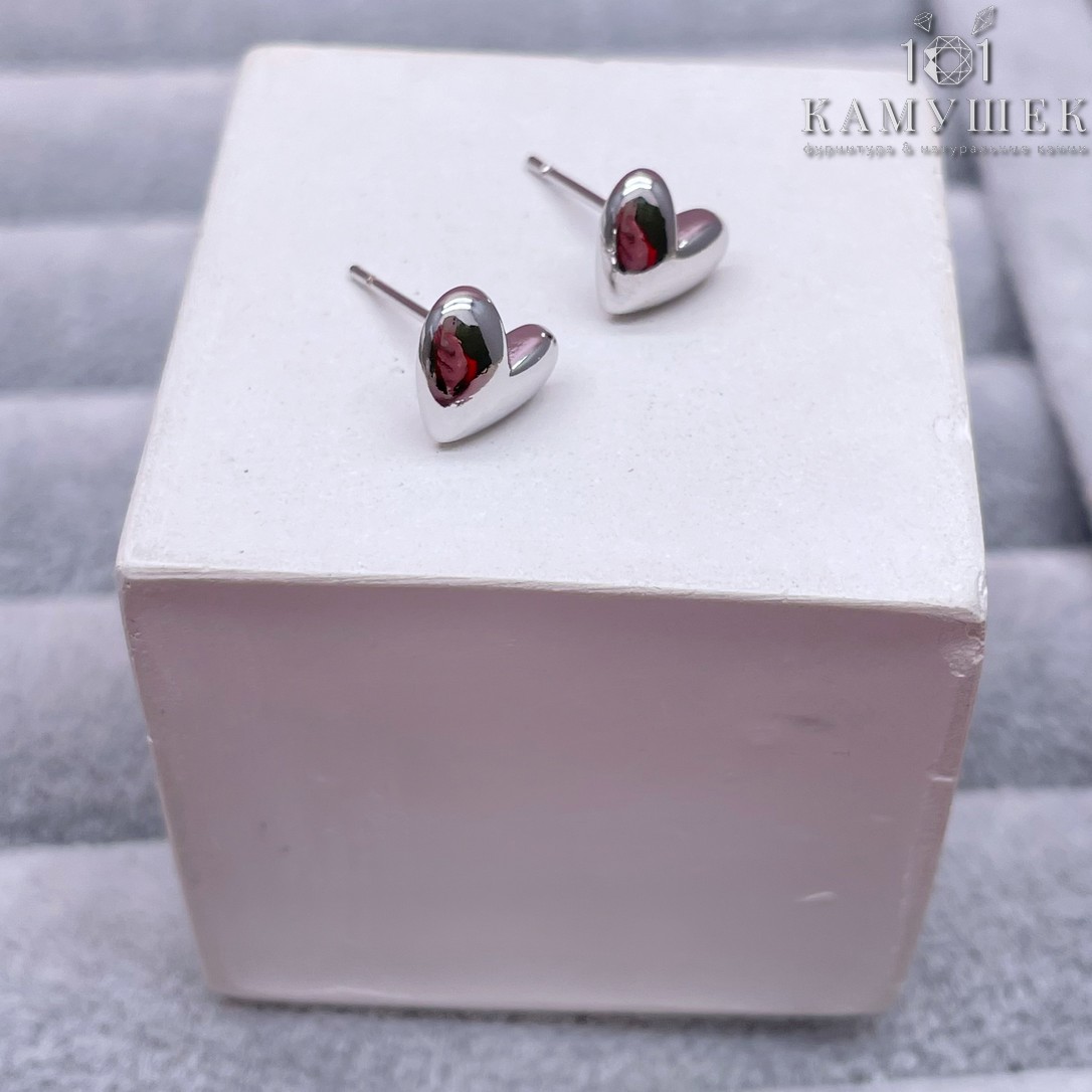 Пусеты сердце гладкое, цвет серебро 7,5х8 мм
